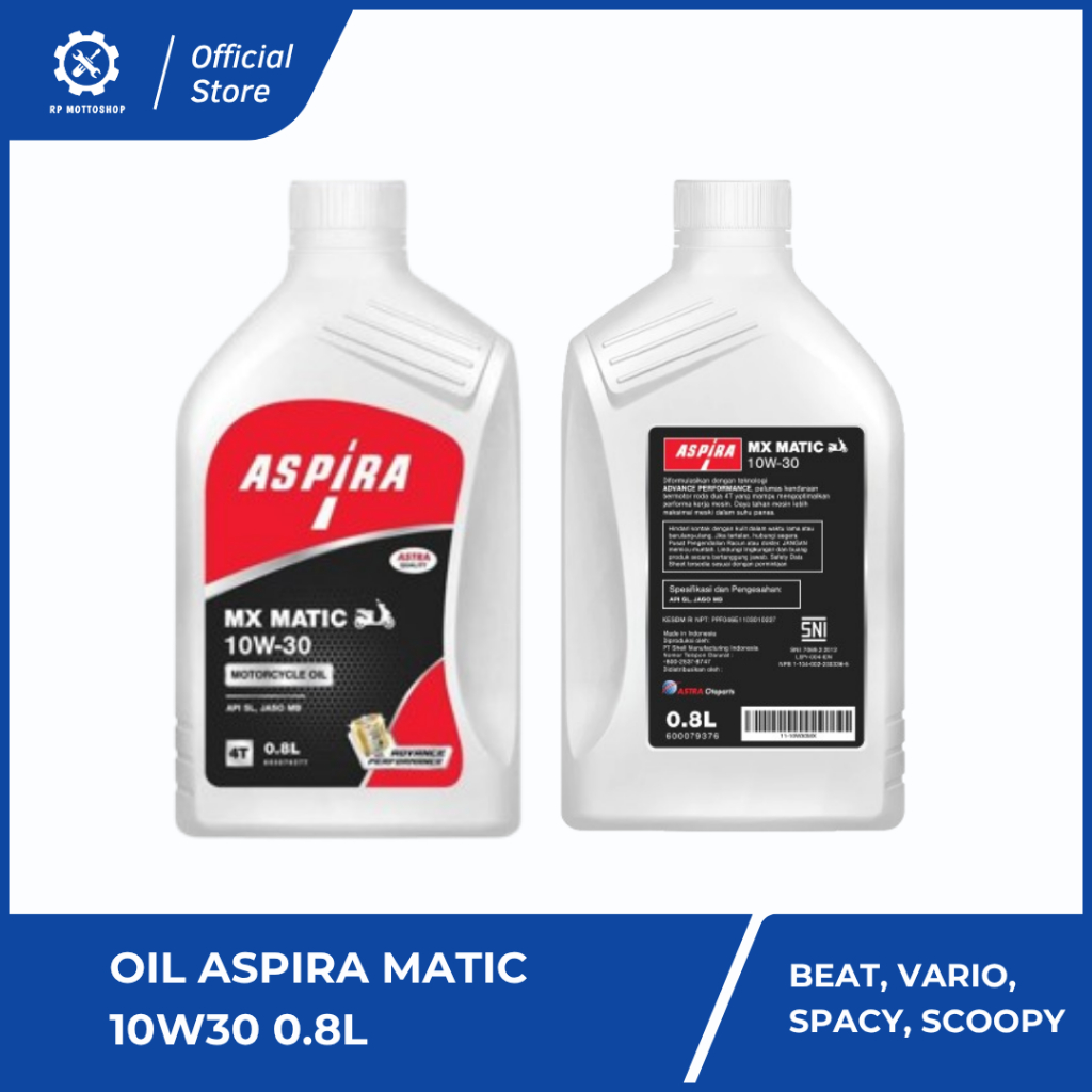 Aspira Oli Matic 10W30 0.8L Motor Vario Beat Scoopy Spacy Mio Soul J Fino