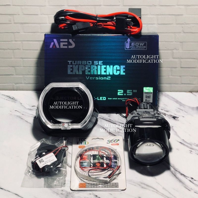 PAKET LENGKAP BILED PROJECTOR AES TURBO SE EXPERIENCE VERSION2 2,5 INCH LOW 60 WATT HIGH 70 WATT