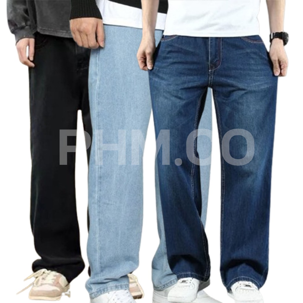 Denim Celana Jeans Pria Celana Gombrang Pria Jeans Cowok Dewasa Jeans Kulot Jumbo Korean Style Baggy Pants Straight Pants