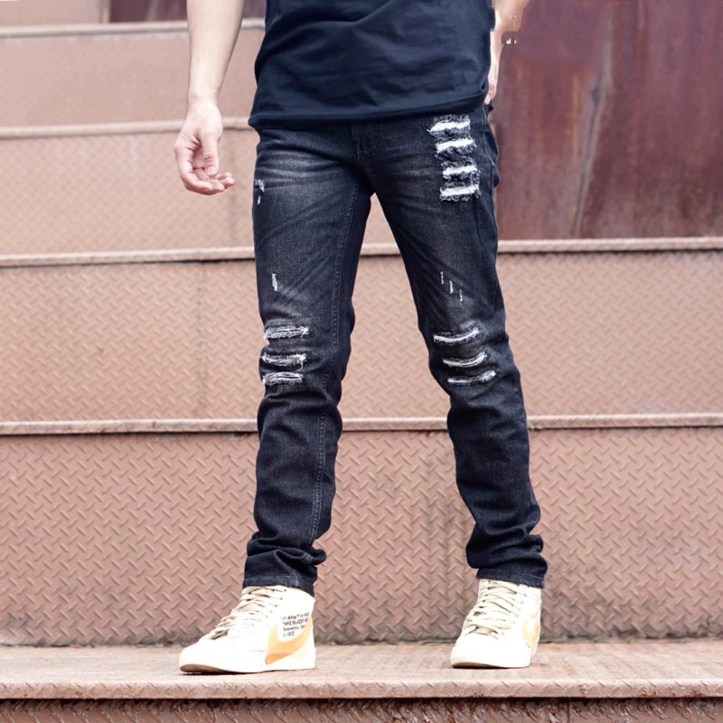 CELANA JEANS PANJANG PRIA SOBEK LUTUT TIDAK TEMBUS - CELANA PANJANG RIPPED SOFT SKINNY FIT ORIGINAL DENIM