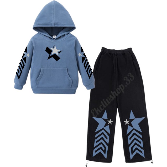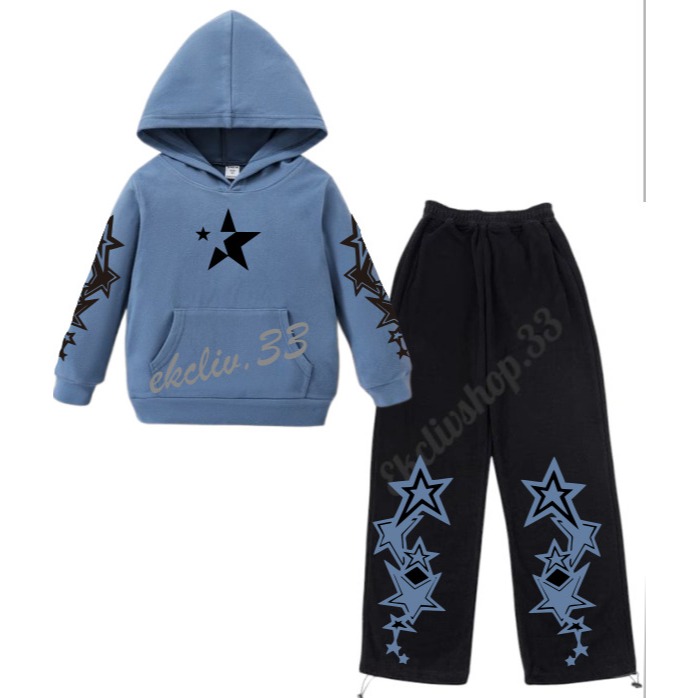 Setelan Celana Baggy Pants Bintang Terbaru Unisex Usia 2-13 Tahun / Setelan Celana Skena Hoodie Terbaru Anak Laki Laki/Perempuan