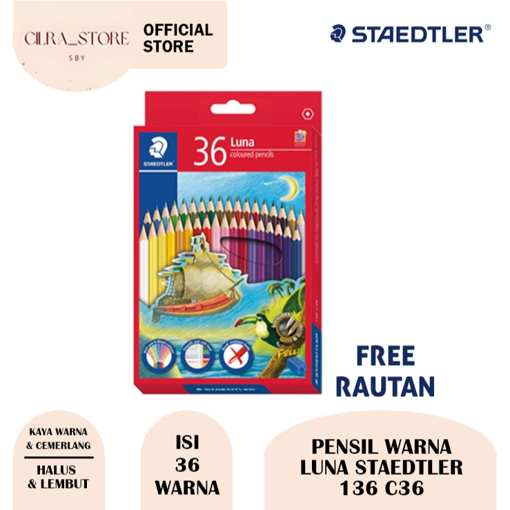 Pensil Warna Luna Staedtler Permanent – Set 12, 24, 36, 48 Warna (Free Rautan) | (1PACK)