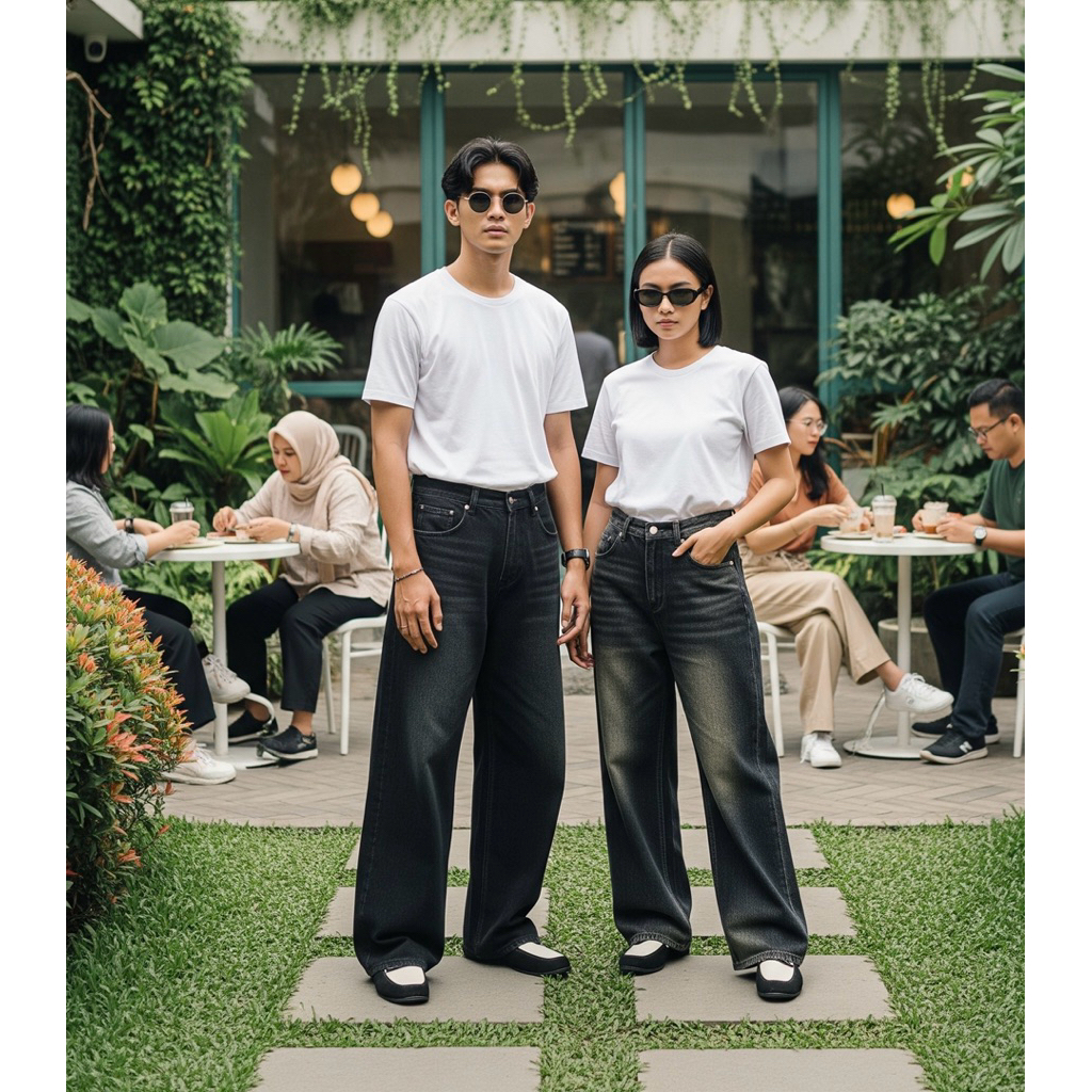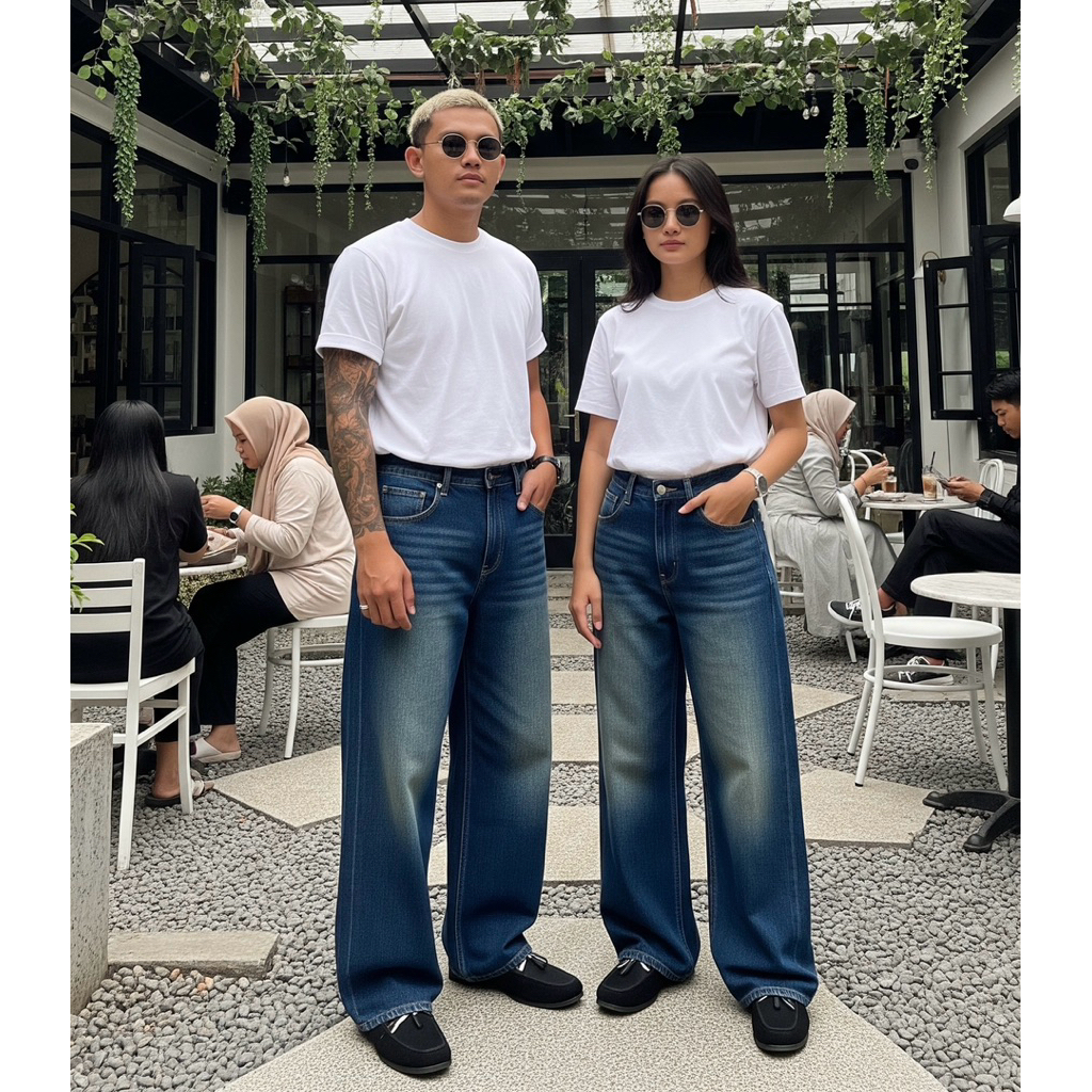 MSDA Goods -Celana Jeans Wide Leg Wisker Gombrong Skena Pria Wanita Unisex Loose Fit Jumbo Big Denim