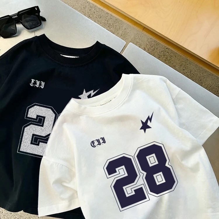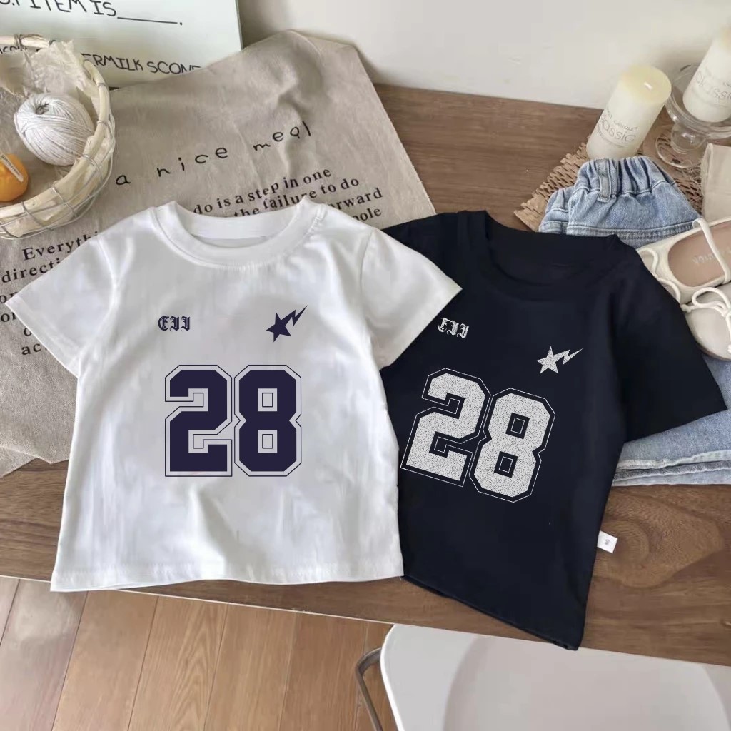 OK korea style Putih cocobaby t shirt cotton Kaos Atasan Anak laki-laki Perempuan | Pola cetak angka 28 gaya olahraga baru Tshirt anak