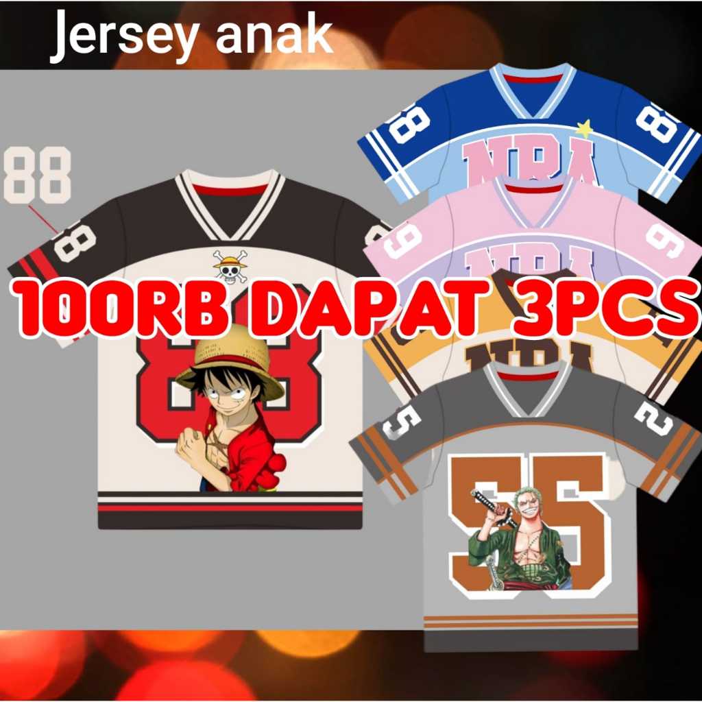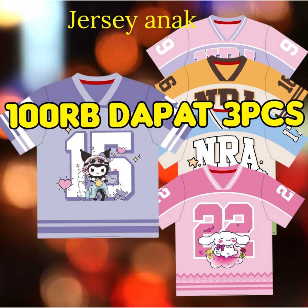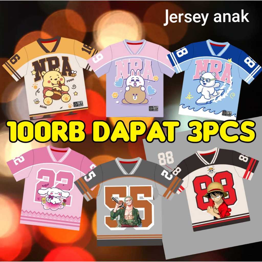 KAOS ANAK JERSEY 100RIBU DAPAT 3PCS USIA 3 - 10 TAHUN/JERSEY VINTAGE ANAK SERIES NUMBER/KAOS BASEBALL OVERSIZE ANAK KARAKTER KUROMI/CINAMOROLL/ONEPIECE