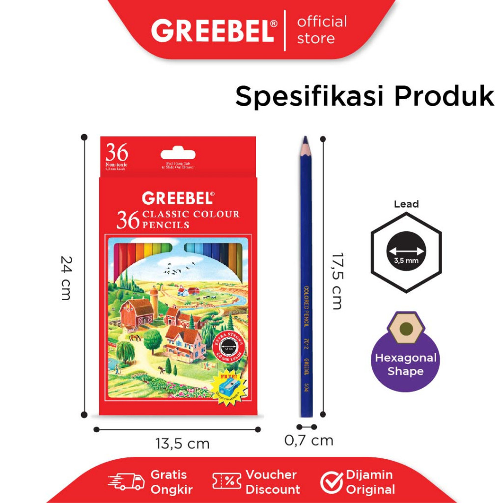 GREEBEL Pensil Warna 12/24/36 Warna Classic Color Pencils / Colored Pencil / Warna Lebih Nyata