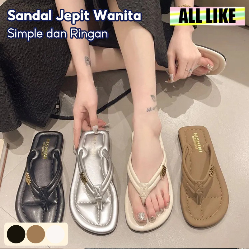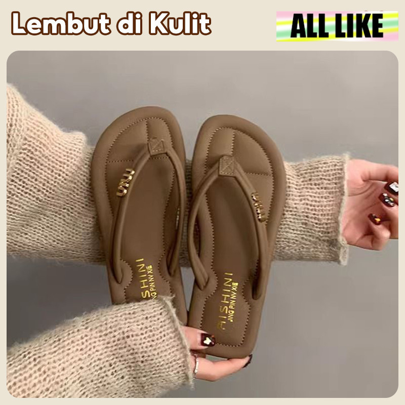 【All Like】Sepatu wanita/Sandal jepit dengan dasar datar/Ringan dan tidak licin/Rasa kemewahan/Sepatu pantai modis/Sandal korean style /Sandal jepit tinggi
