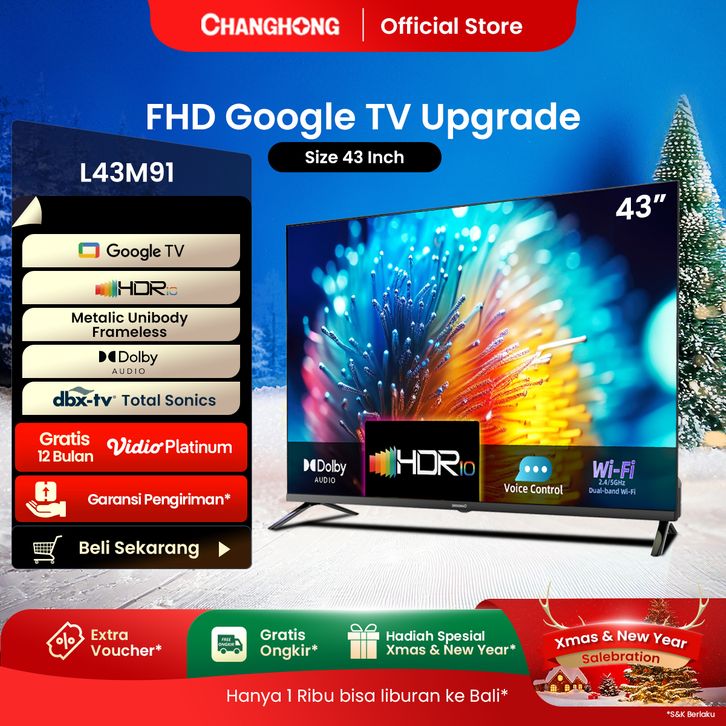 Changhong Google TV 43 inch FHD Dolby Audio Google Assistant Smart TV Digital TV Free Vidio (L43M91)