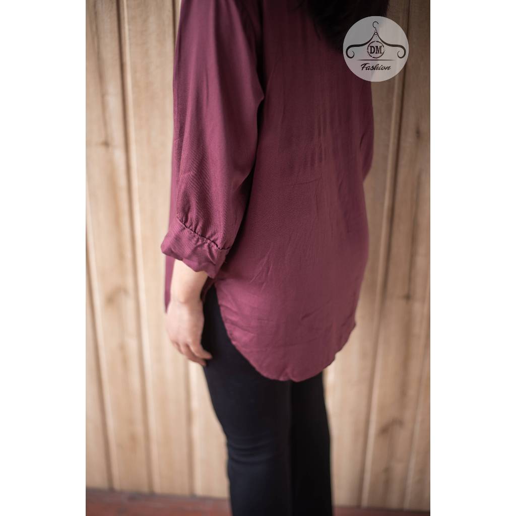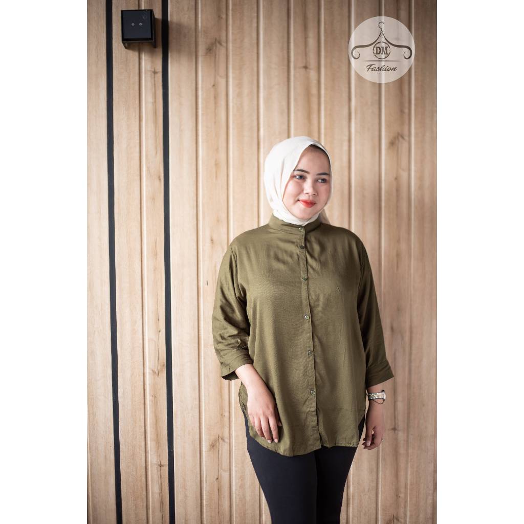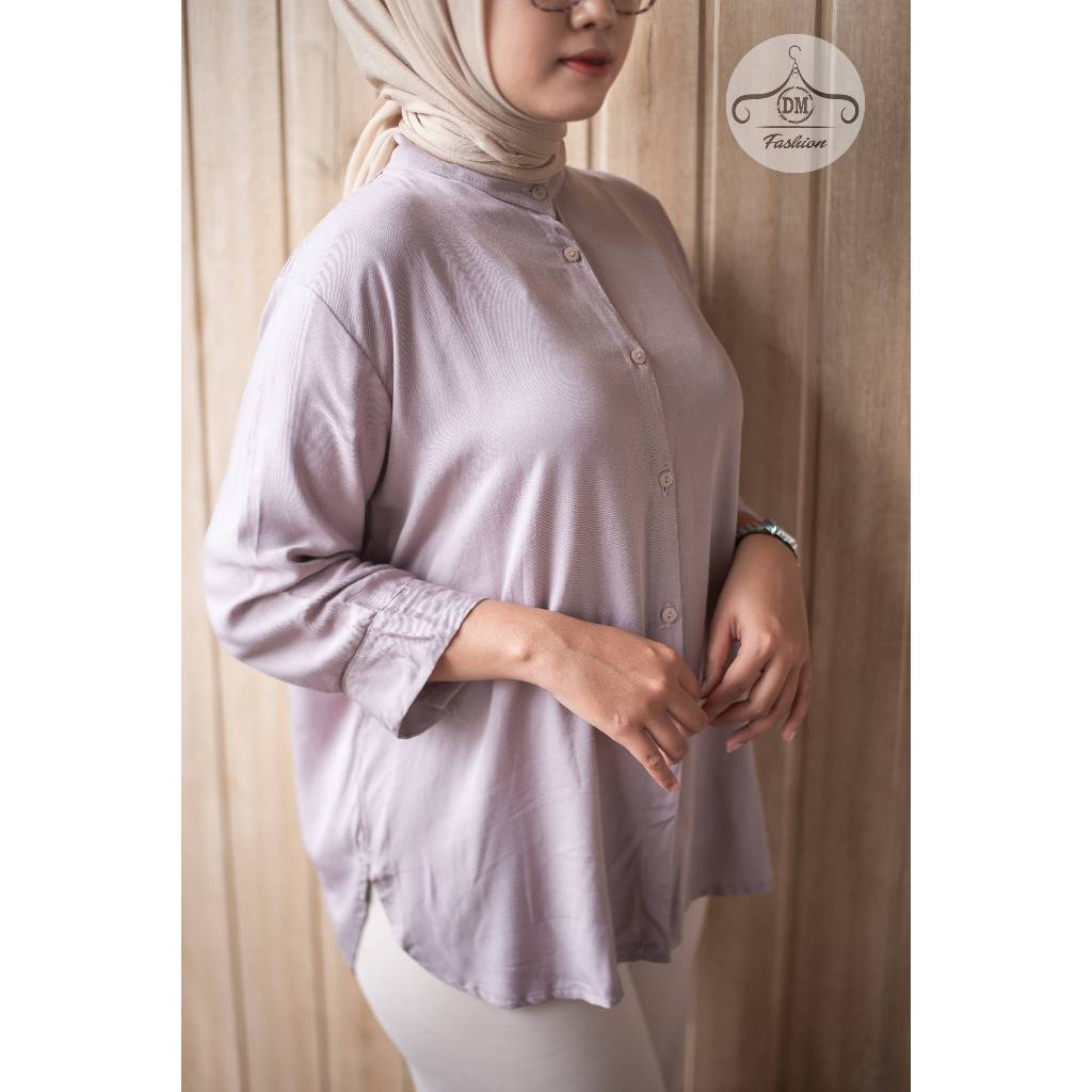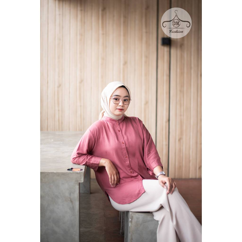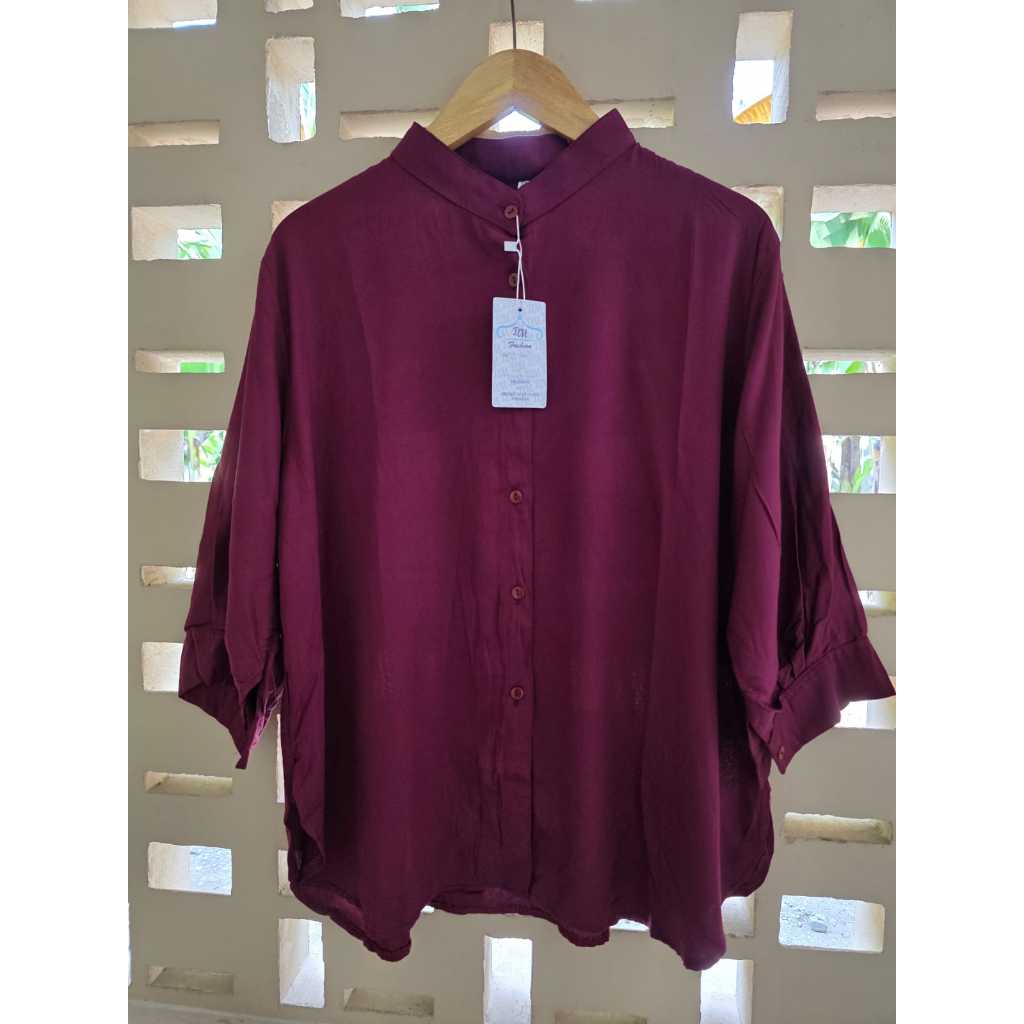 Kemeja Rayon Twill lengan 3/4 Blouse wanita lengan 3/4