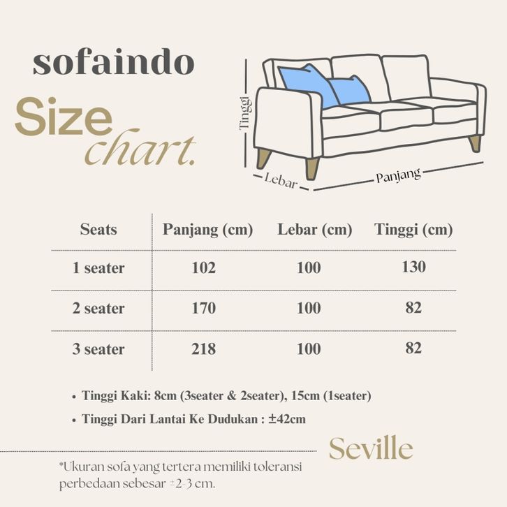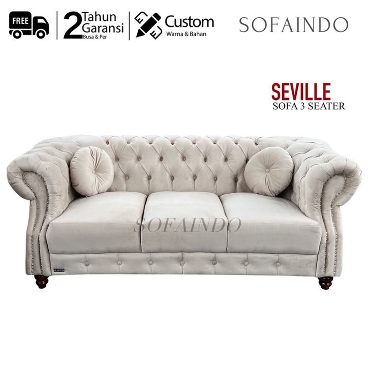 Sofa 3 Seater - SEVILLE Bisa Tukar Warna dan Bahan Gambar Asli