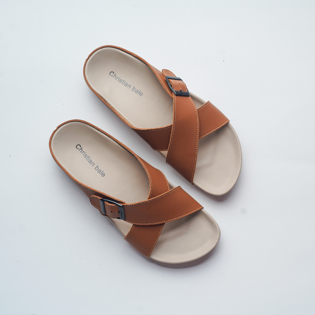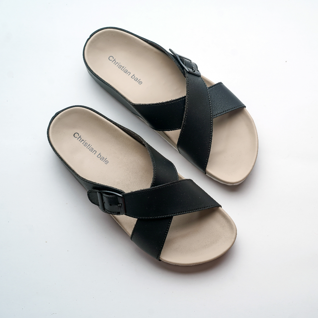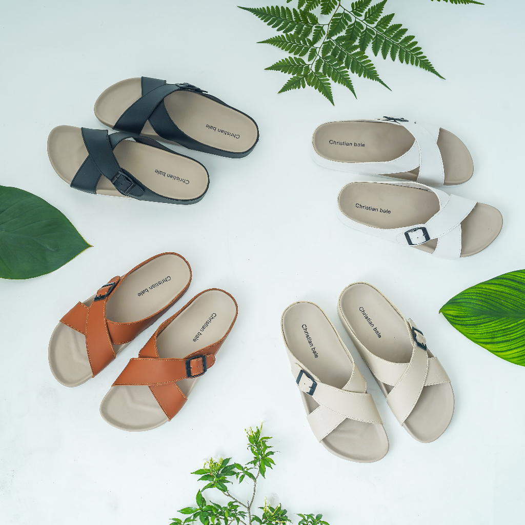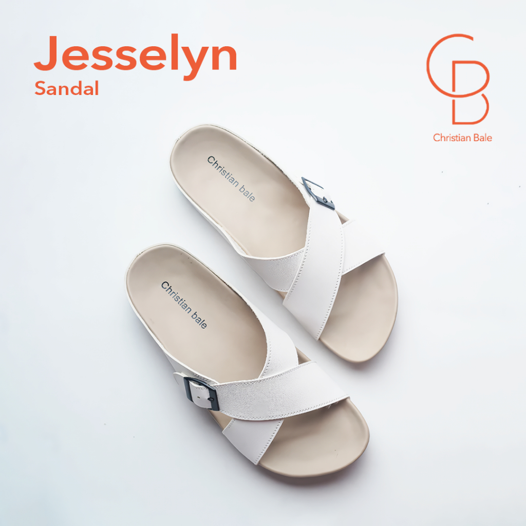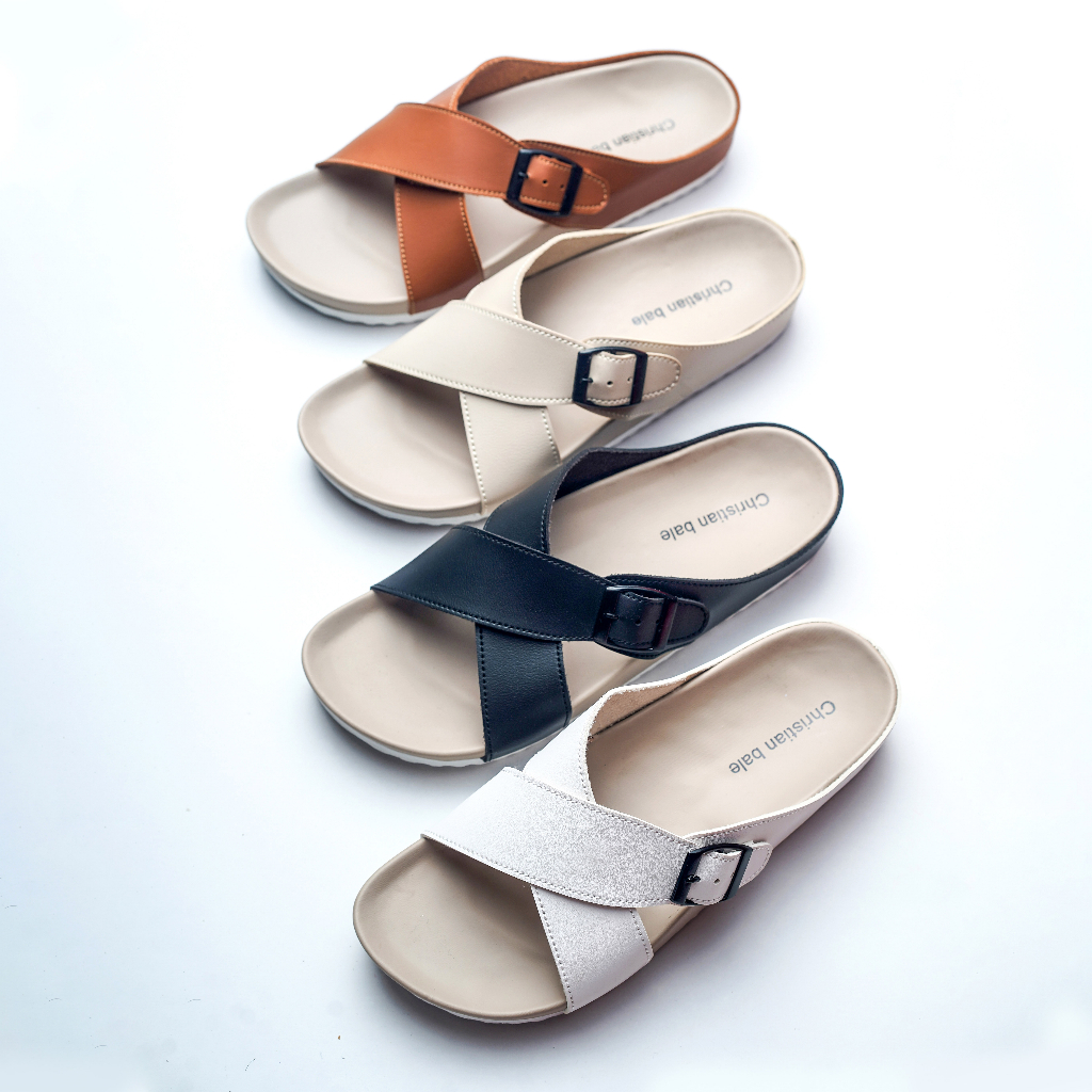 Christian Bale JESSELYN Sandal Slop Wanita Kekinian Sendal Kasual Cewek Flat Selop Ban Silang Gesper Terbaru