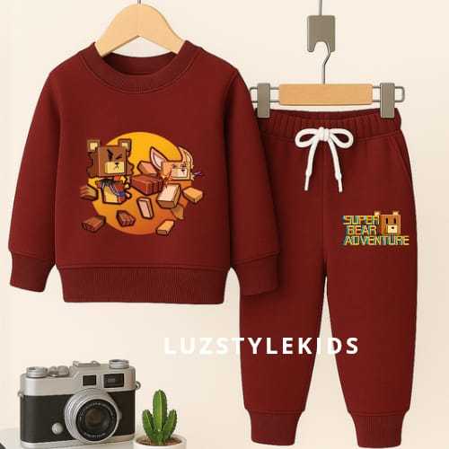 Setelan Anak Super Bear Adventure Terbaru Sweater Anak Laki-laki dan Perempuan Usia 1-10 Tahun