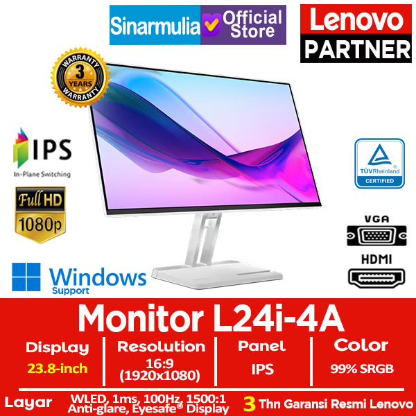 Monitor LED Lenovo L24i-4A 23.8" IPS 100Hz 1ms HDMI VGA 99 PERSENsRGB EyeCaring