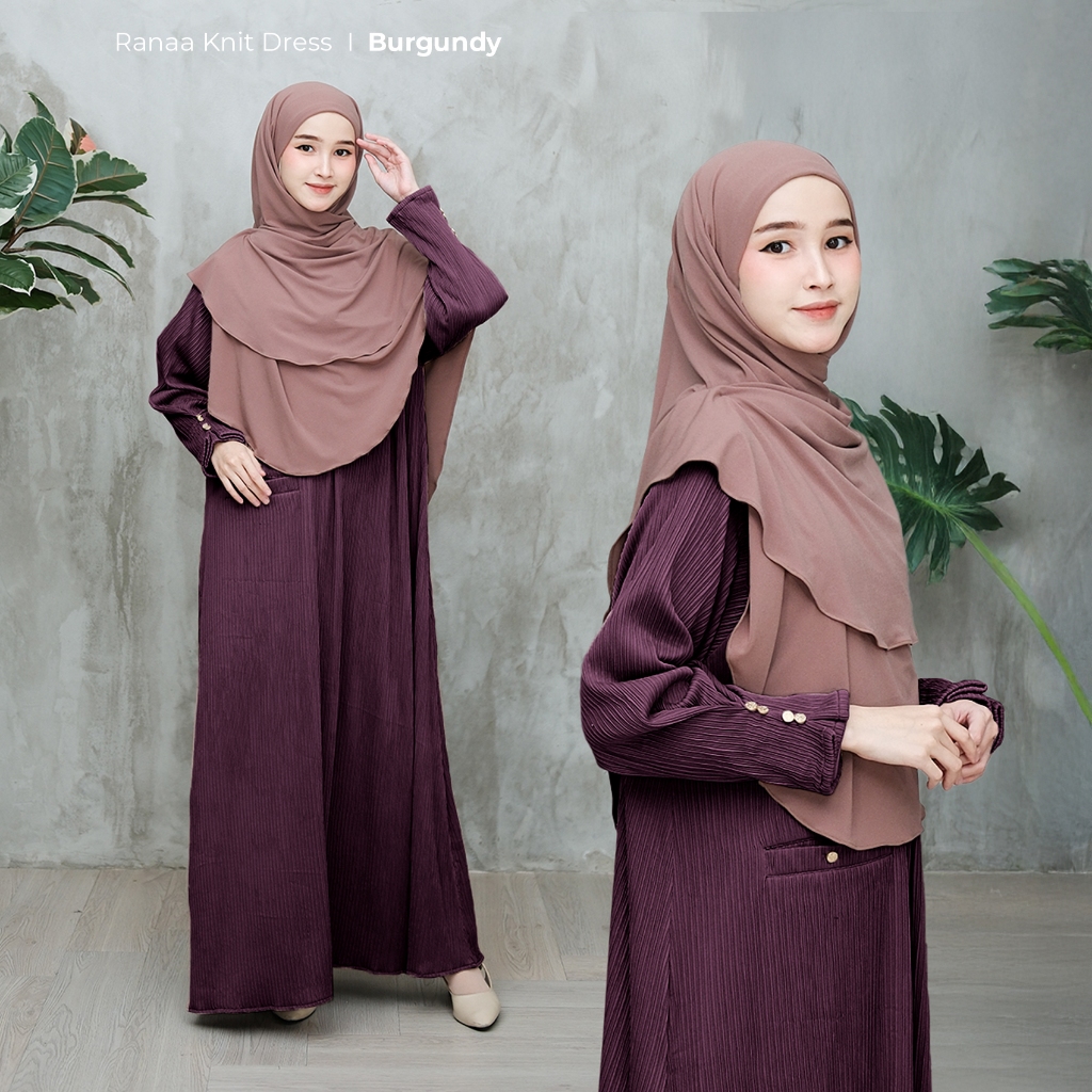 ZAYRA HIJAB | RANAA DRESS | Gamis Knit Wanita / Ukhti Set Hijab Daily Syari Simpel Premium Lebaran Jumbo Mewah Elegan Terbaru 2025