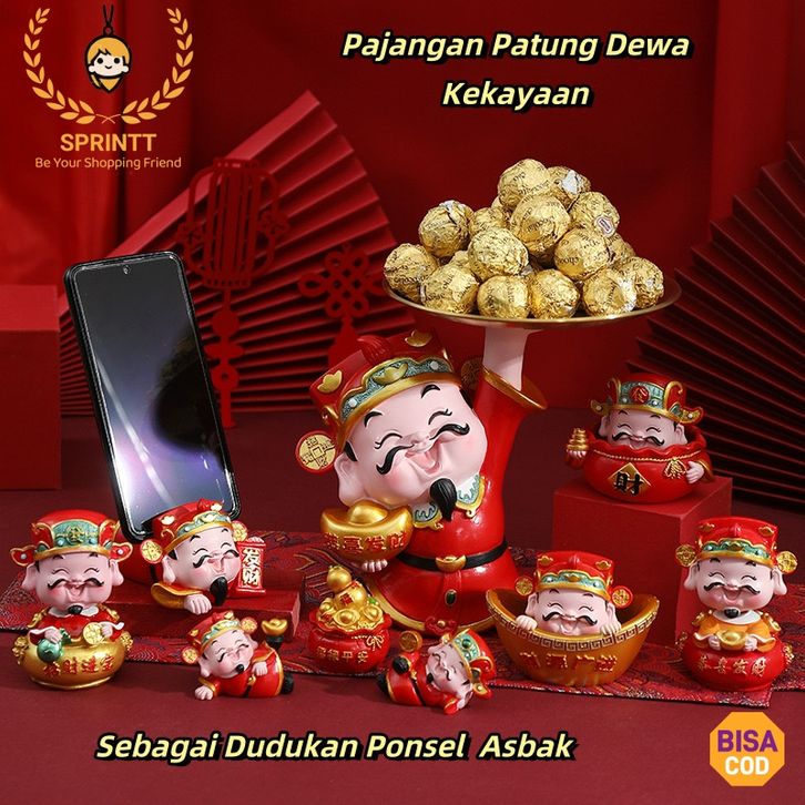 [SPRINTT] PM006 Pajangan Patung Dewa Kekayaan Dudukan Ponsel/Phone Holder Asbak Cai Shen Pajangan Pintu Masuk Hiasan Tah