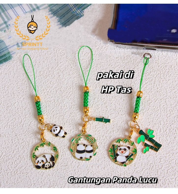 [SPRINTT] GK063 Gantungan HP Panda Lucu Bamboo Daun Keychain China gantungan kunci mobil / tas / hp Gantungan Kunci Pria
