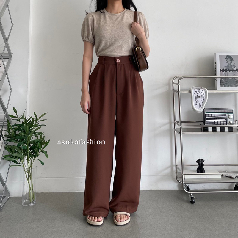 ASOKA Haelyn - LOOSE PANTS for PETITE SIZE 668 - Kulot Highwaist Anti Kusut - Trouser Wanita Celana Panjang Casual Formal