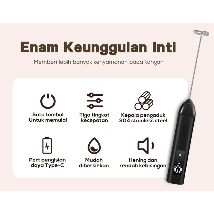 3 Gear Mixer Mini Mixer Pengocok Susu Milk Frother High Speed Rechargeable Type C