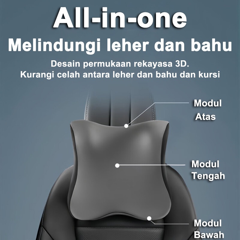 Bantal Mobil SandaranLeher Hitam / abu-abu Bantal Sandaran Punggung Memory Foam Neck Pillow Headrest Mobil Bantal Leher