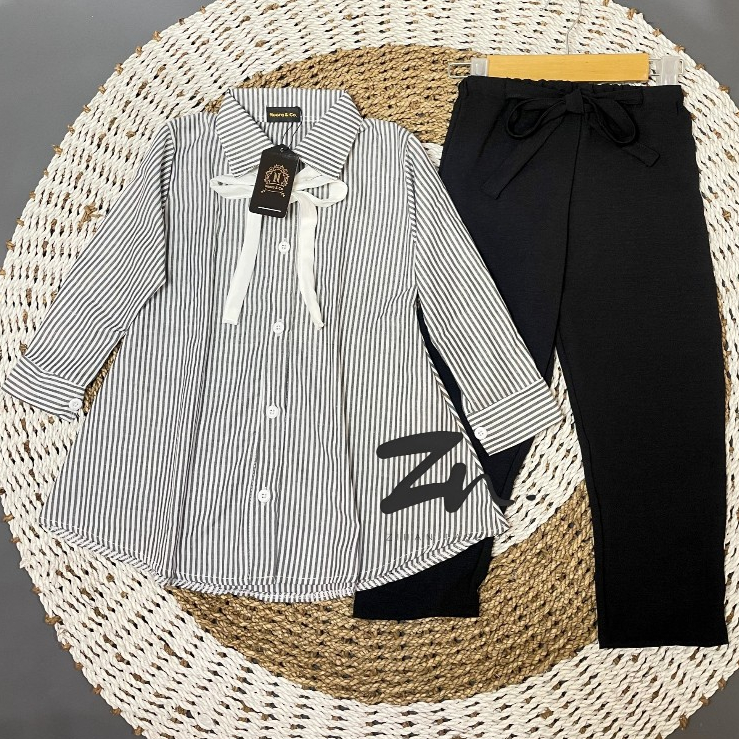 Ancika Set- Stelan Kemeja Salur Anak Perempuan Umur 4 - 11 Tahun Model Terbaru Harga Termurah dan Terlaris