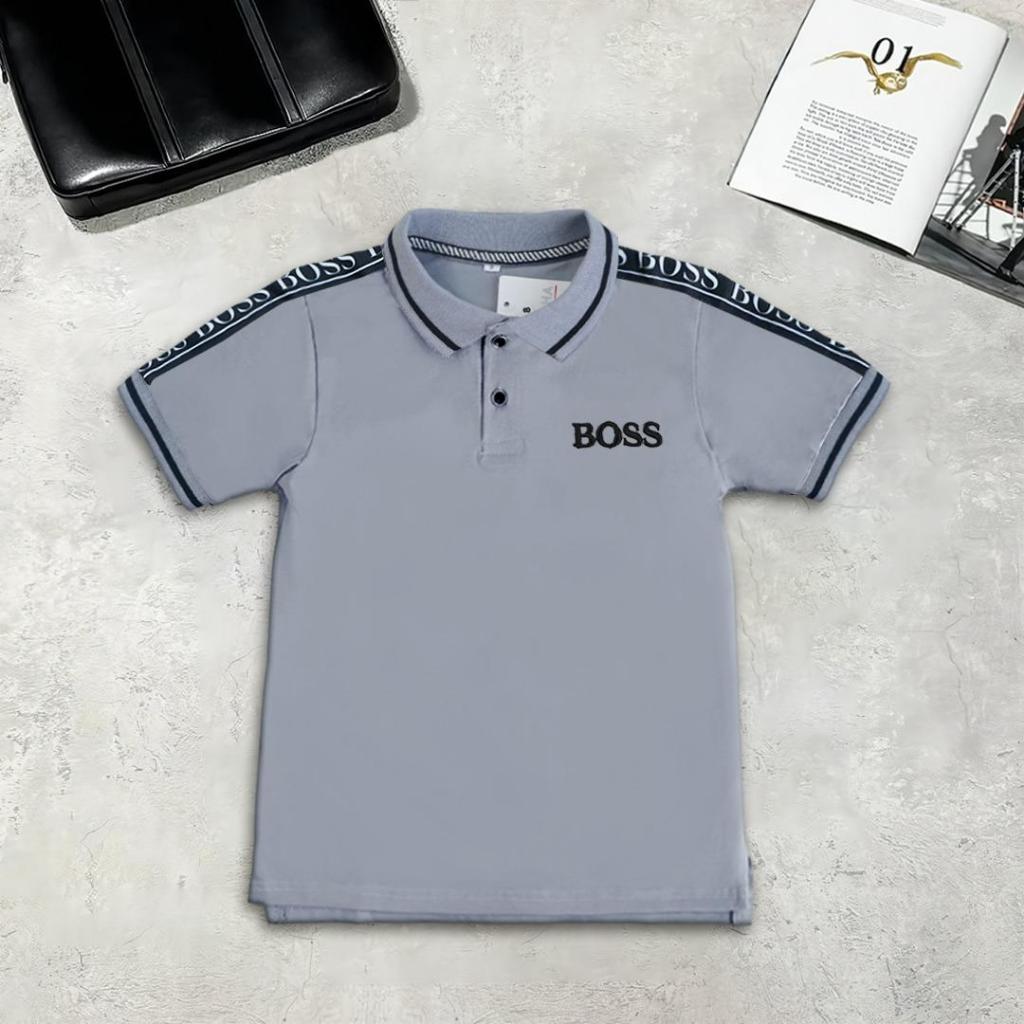 Baju Kaos Berkerah Polo Wangki Bahan Adem Dengan Aksen Lis Bahu Untuk Anak Laki Laki 3 - 10 Tahun Warna Abu Abu Hitam Hijau Army