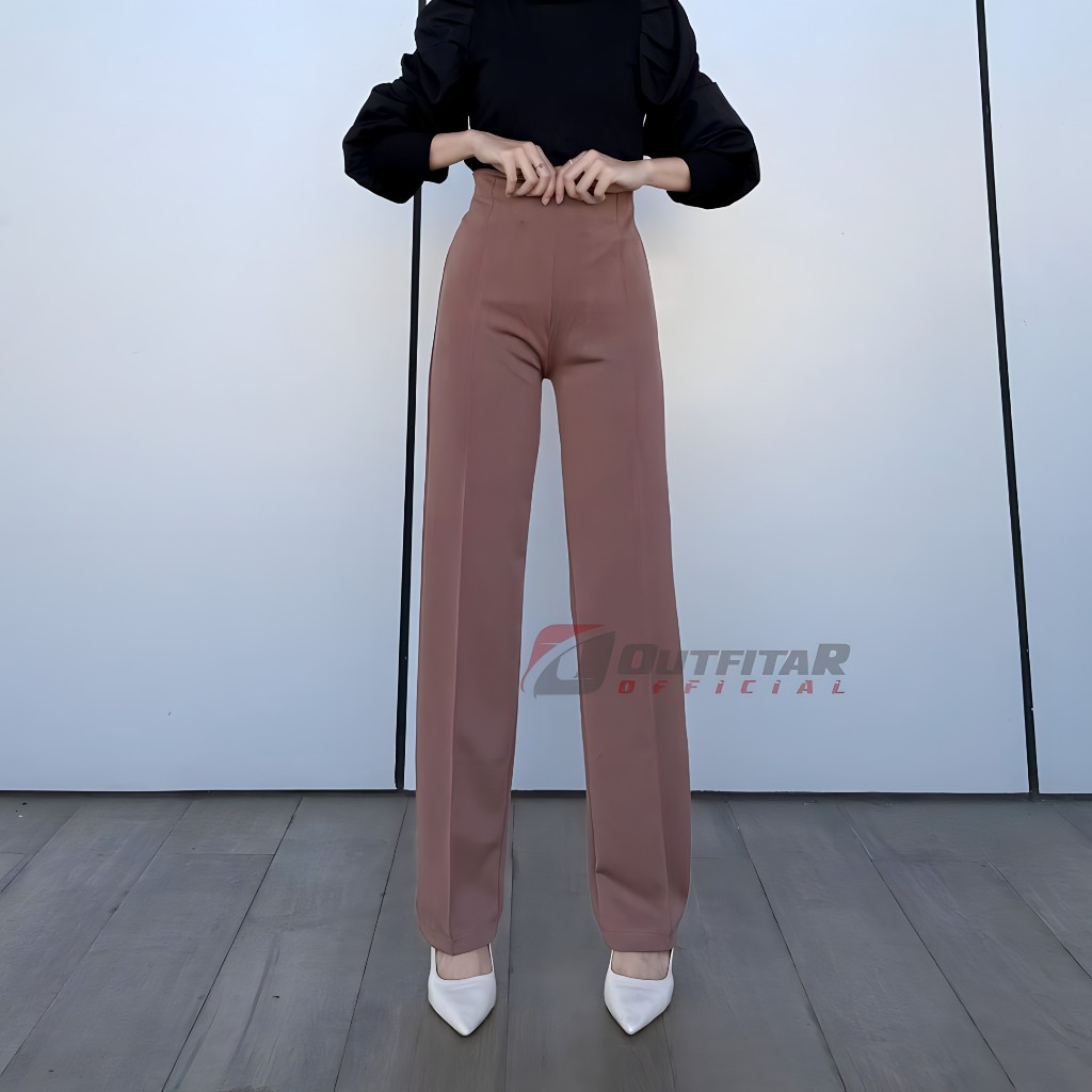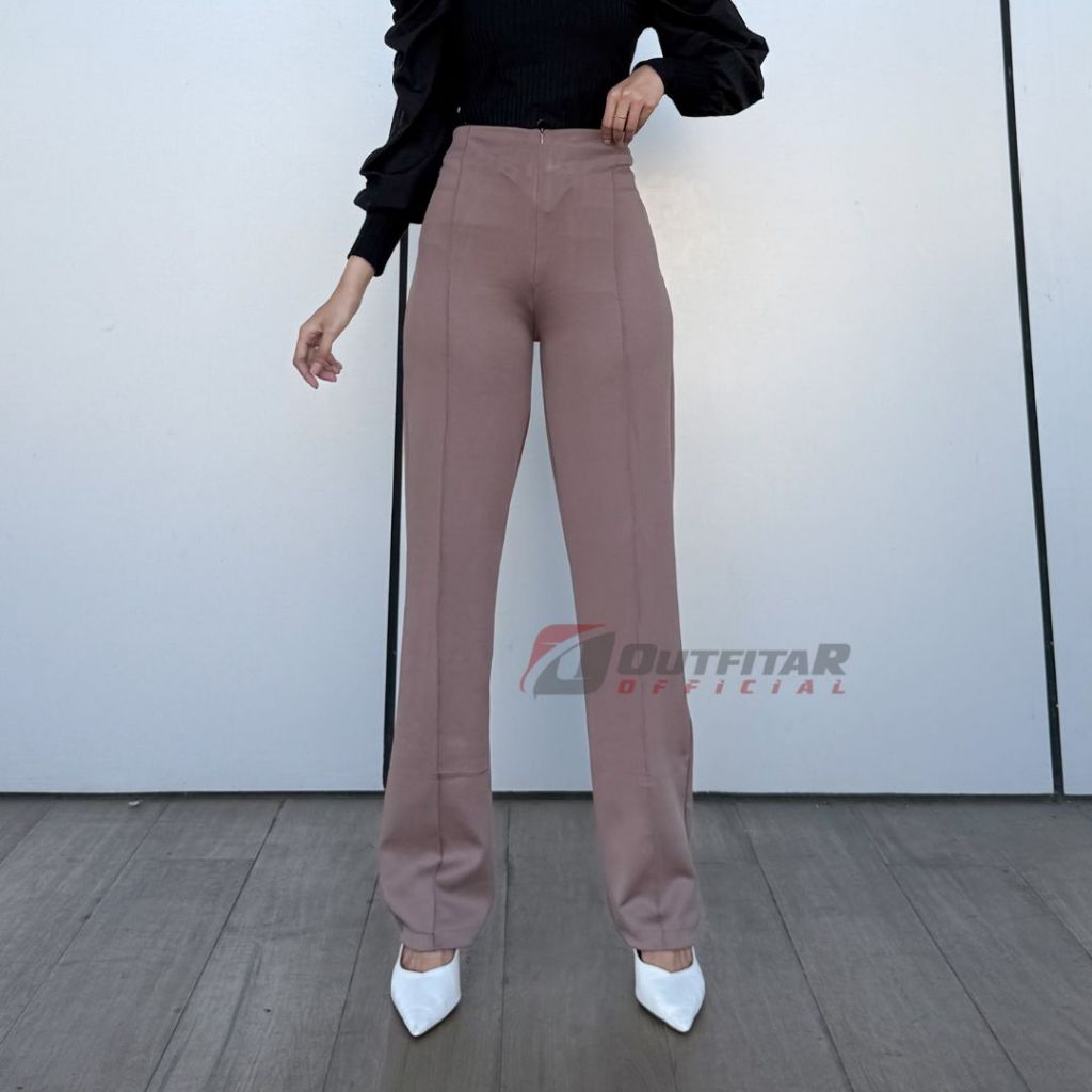 Celana Wanita Kulot Garis Basic HW Irene Cullotes Scuba Wide Leg Kulot Premium