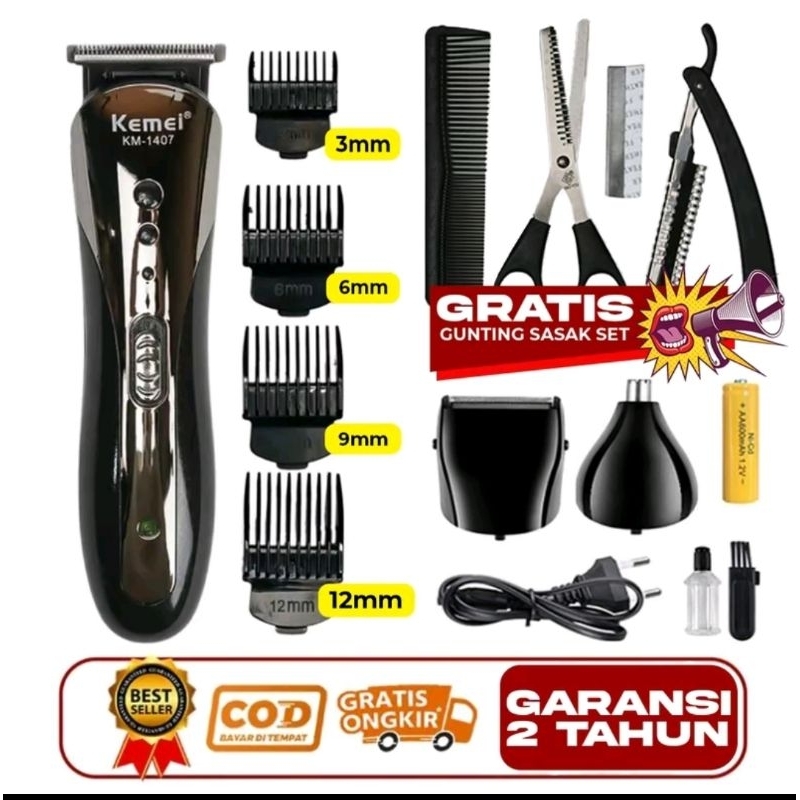 Alat Cukur Rambut Elektrik yang Di Cas Kemei KM 1419 + Gunting Sasak / KM-1407 - Multifungsi Hair Clipper 3in1 Rec