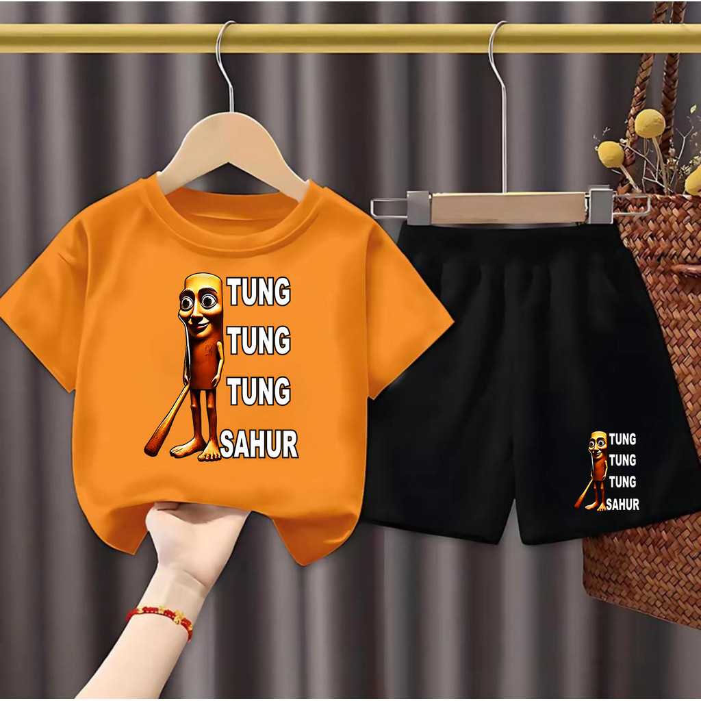 SETELAN ANAK-ANAK COWOK DAN CEWEK MOTIF TUNG TUNG SAHUR / BAJU ANAK-ANAK LAKI - LAKI DAN PEREMPUAN / KAOS ANAK ONE SET ANAK PRIA DAN WANITA / TTS TULISAN