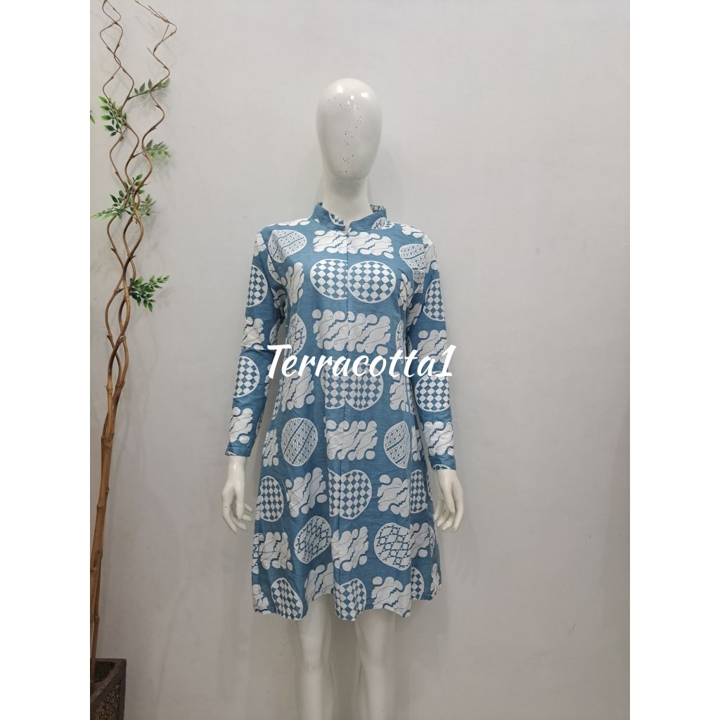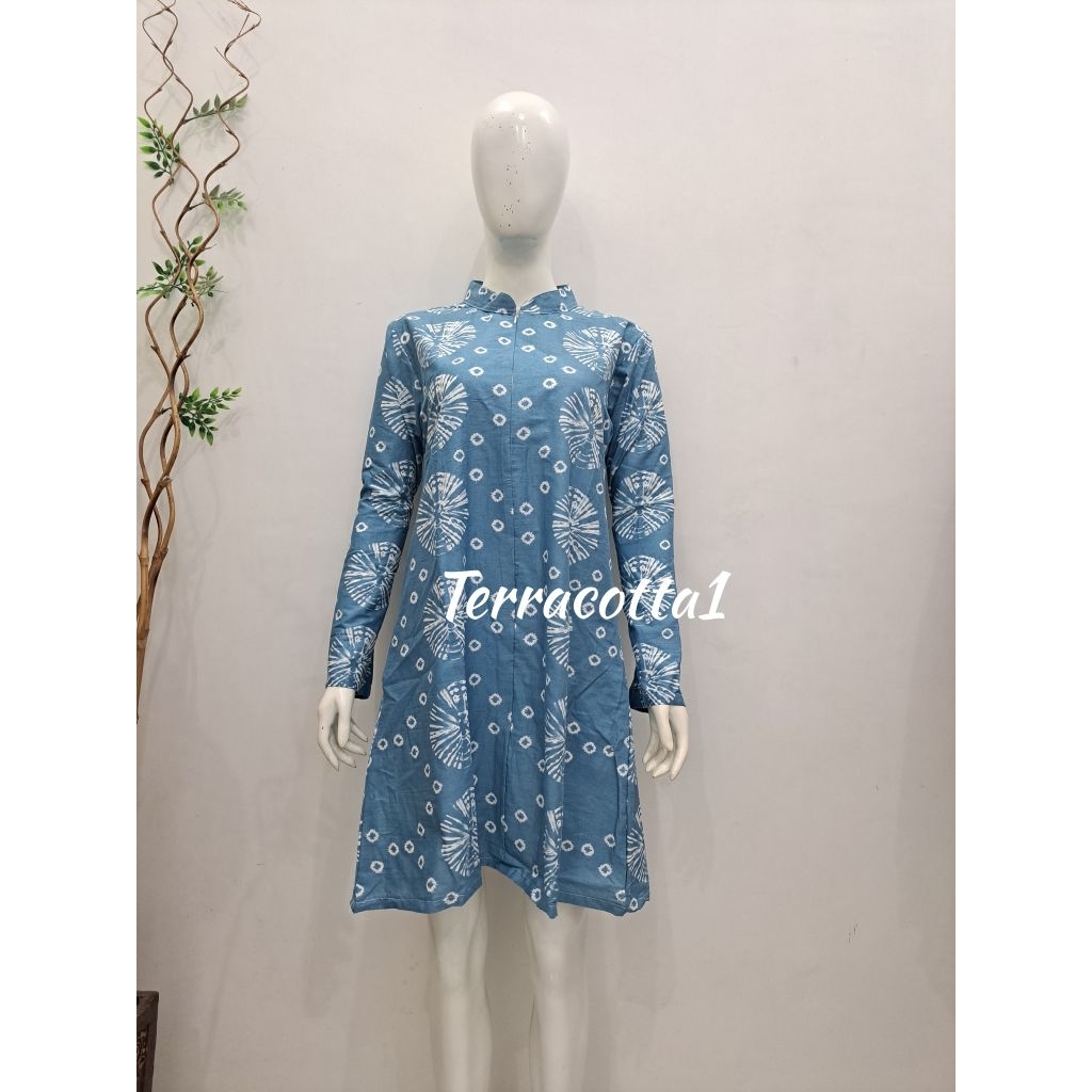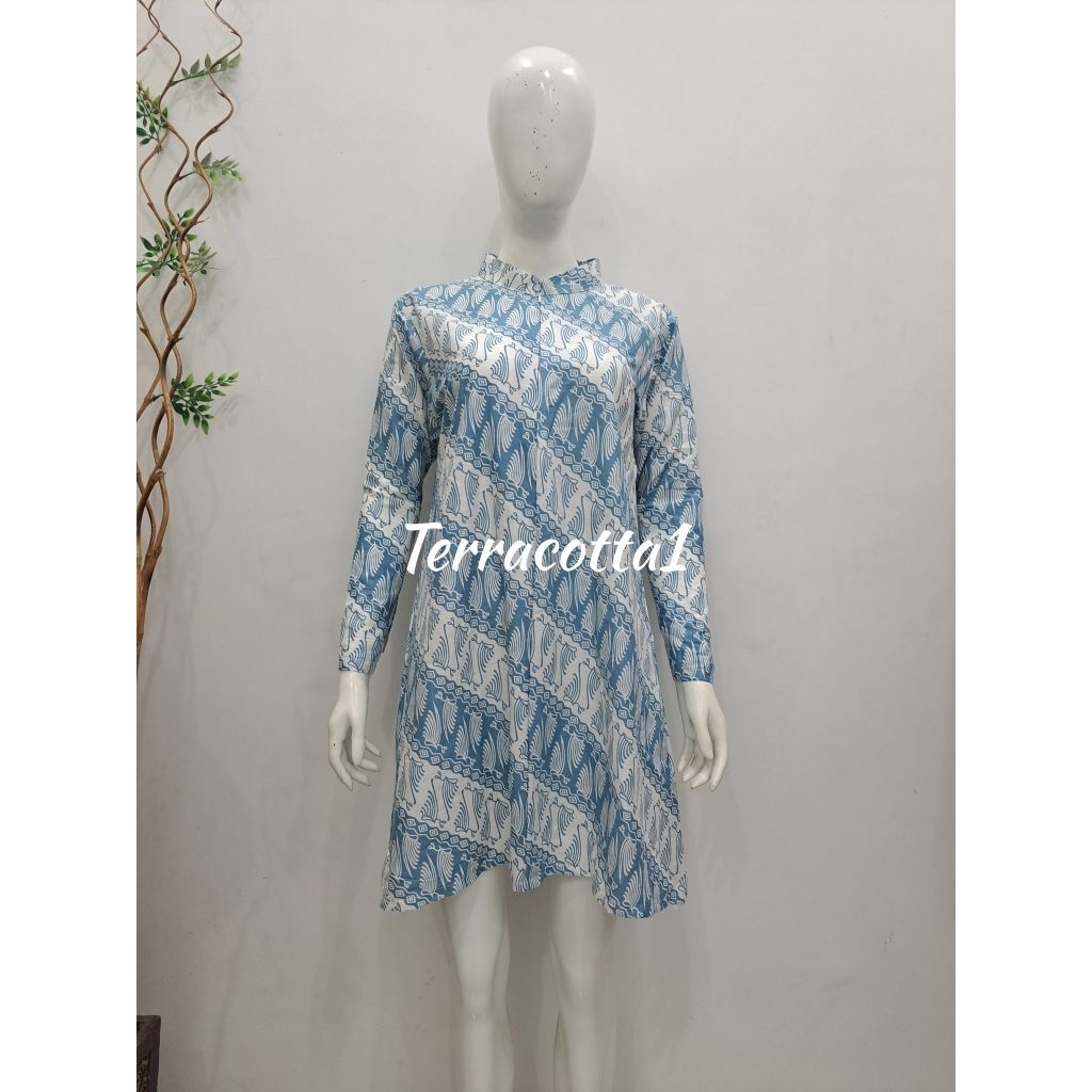 Tunik dan kemeja batik motif biru busui friendly-daily size s-jumbo