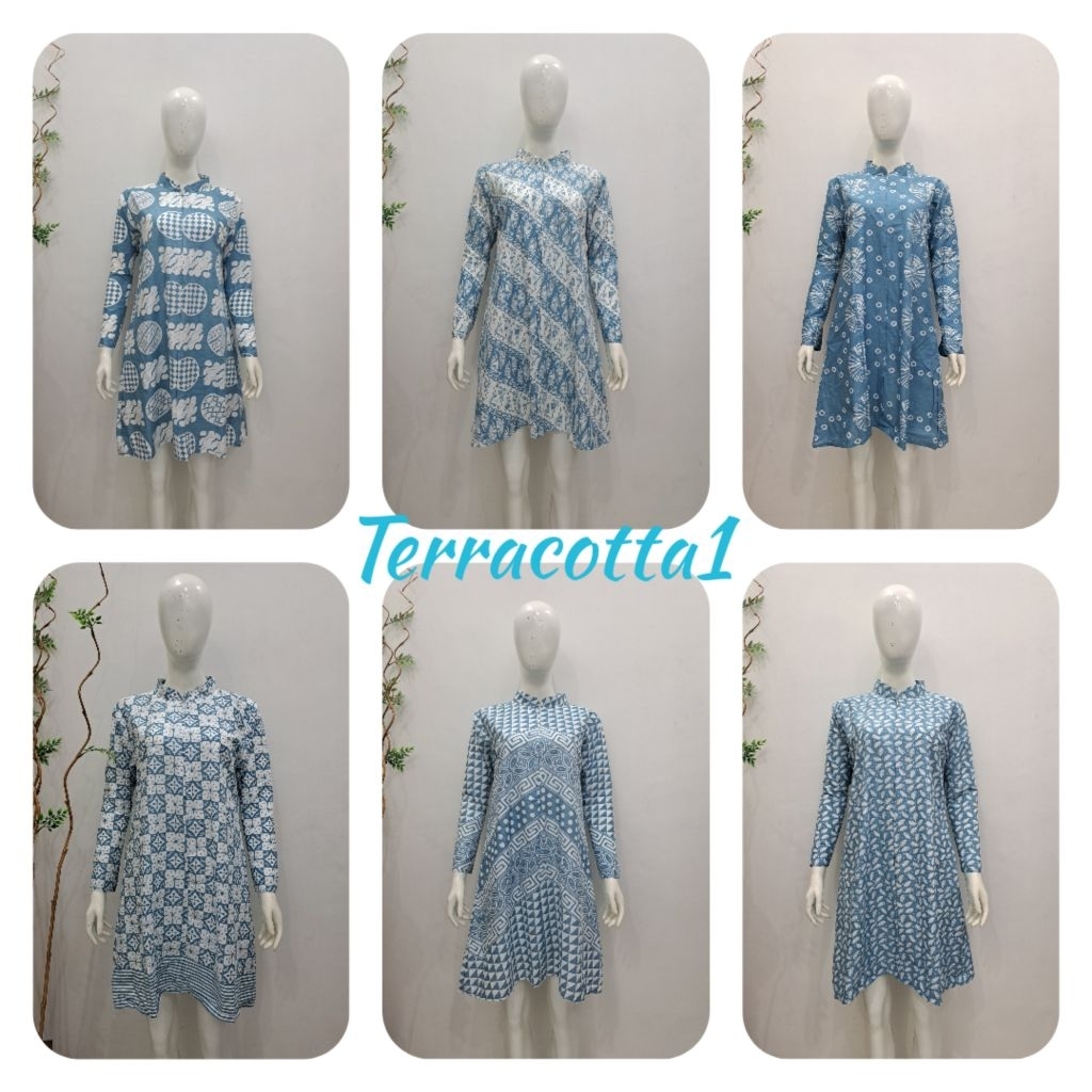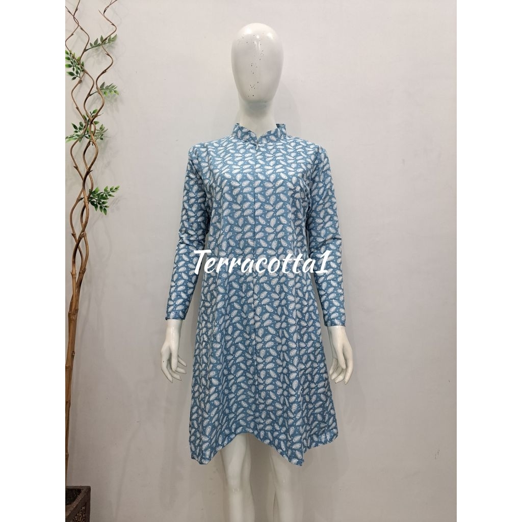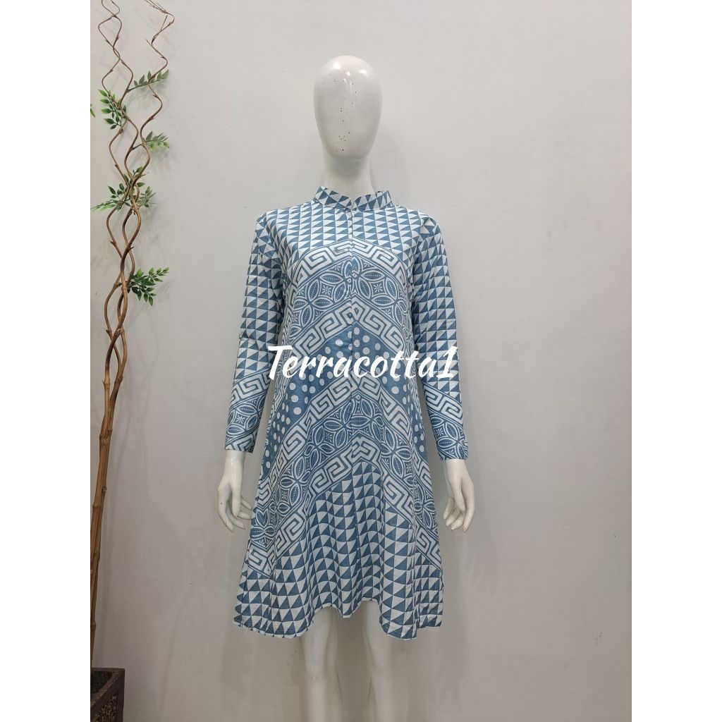 Tunik dan kemeja batik motif biru busui friendly-daily size s-jumbo