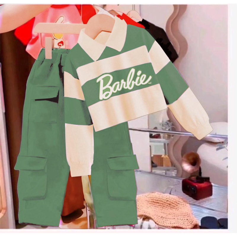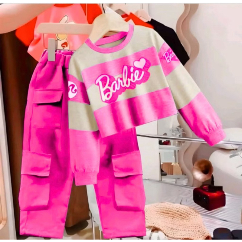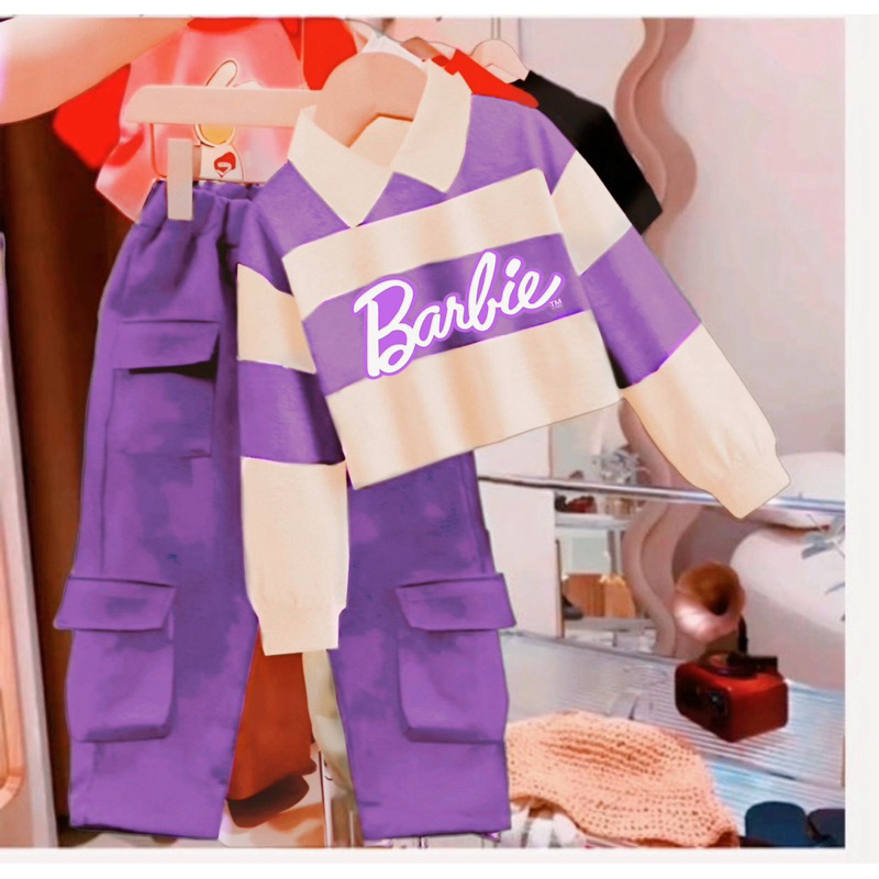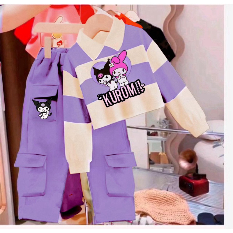 SETELAN KUROMI SWEATER SET CARGO ANAK PEREMPUAN BAJU DAN CELANA PANJANG MODEL BARBIE CARGO USIA 1-12TAHU