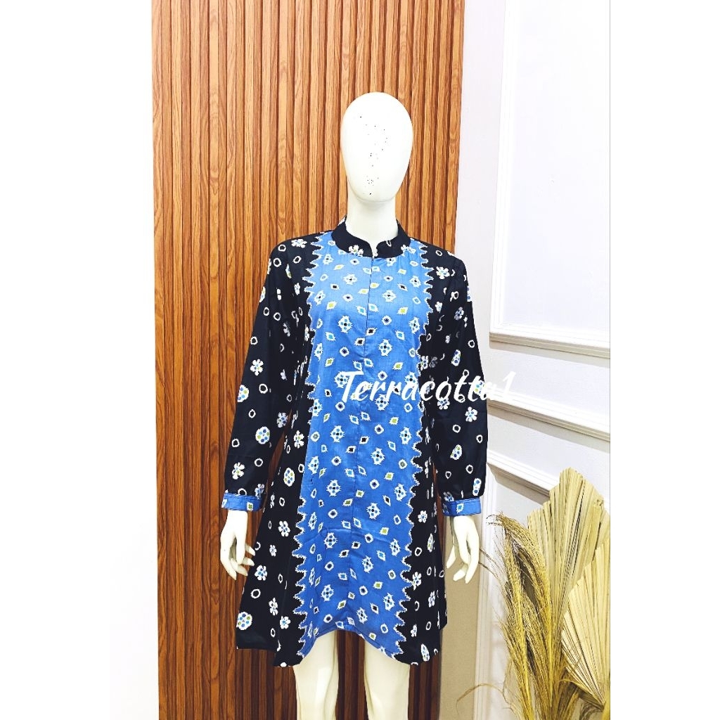 Tunik dan kemeja batik halus motif jumputan bunga tengah busui friendly-daily size s-jumbo