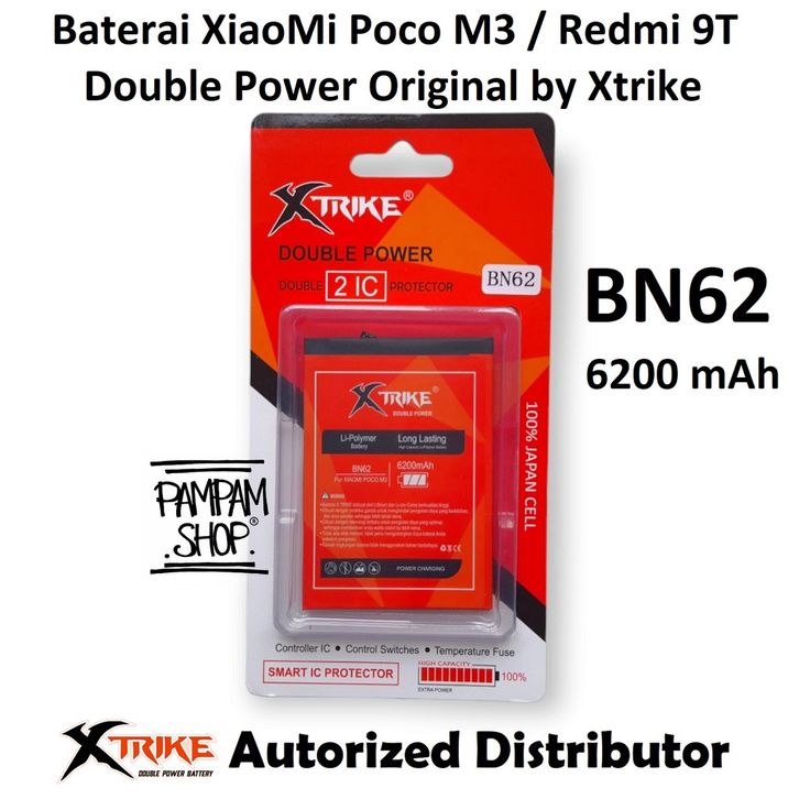Baterai XTRIKE Double Power Original XiaoMi Poco M3 Redmi 9T BN62 Pocophone Batre Batrai Battery HP Handphone Ori BN 62