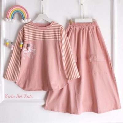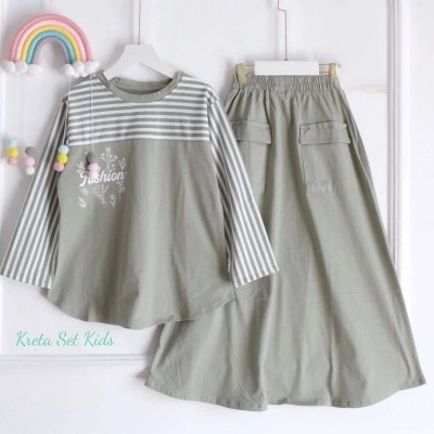KRETA SET KIDS SETELAN ROK CARGO VIRAL ANAK PEREMPUAN SETELAN ROK BAJU MUSLIM ANAK