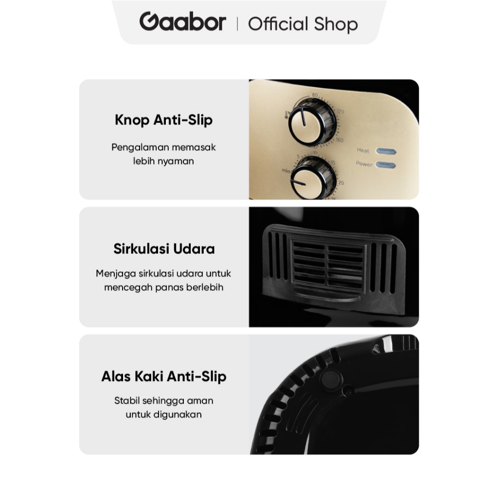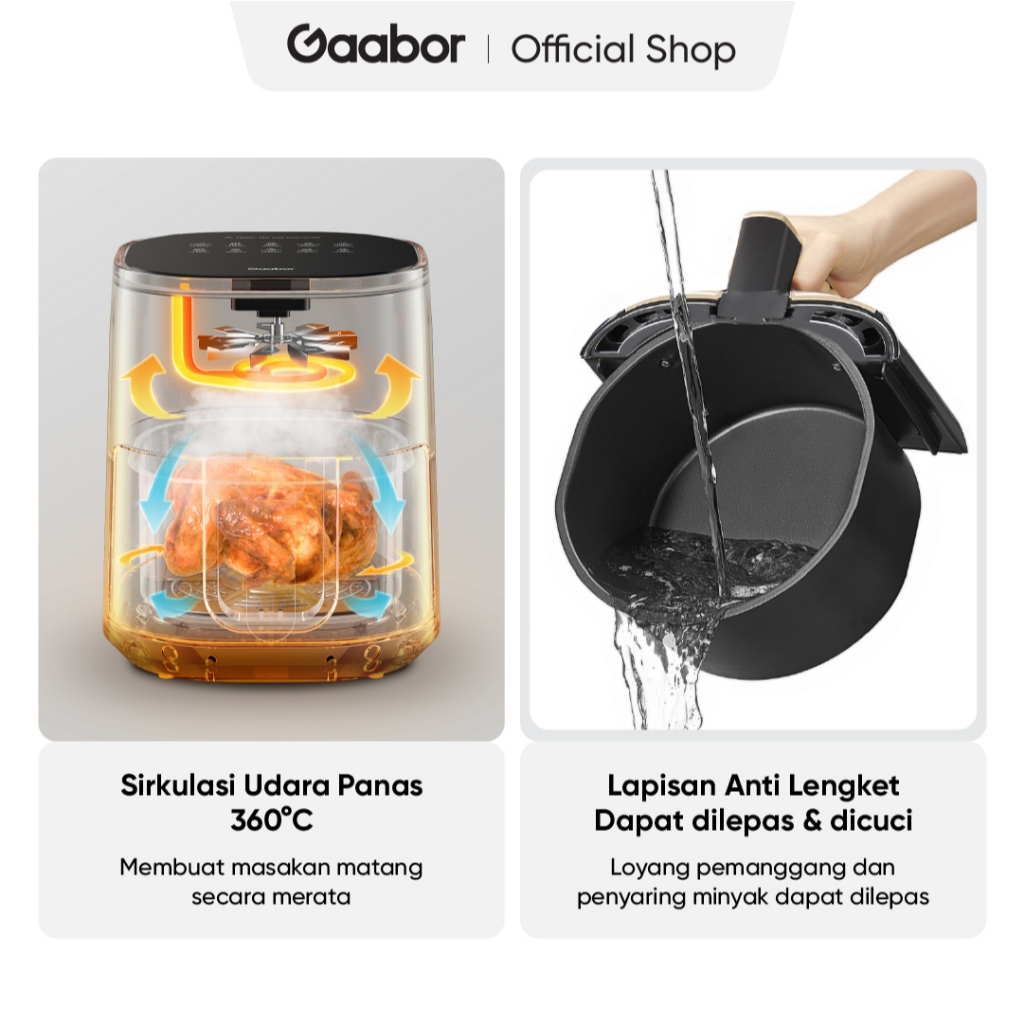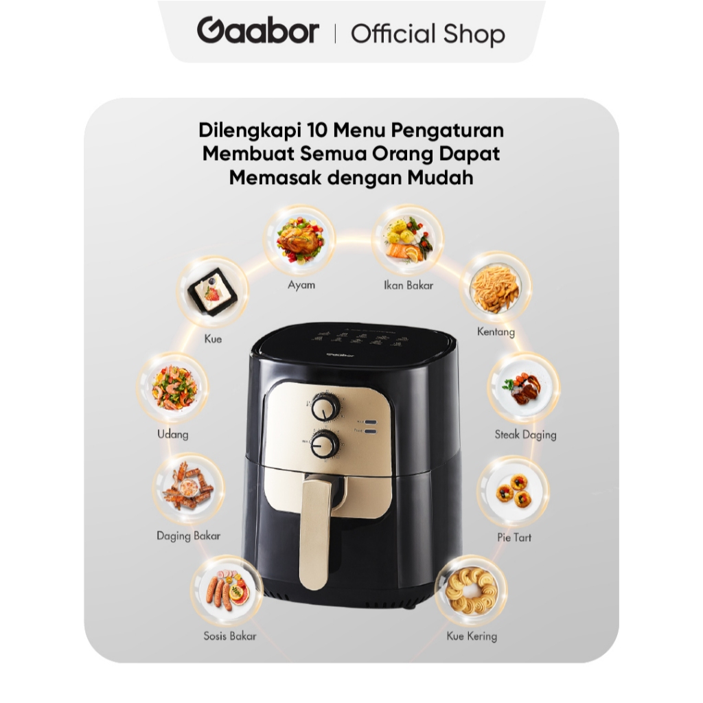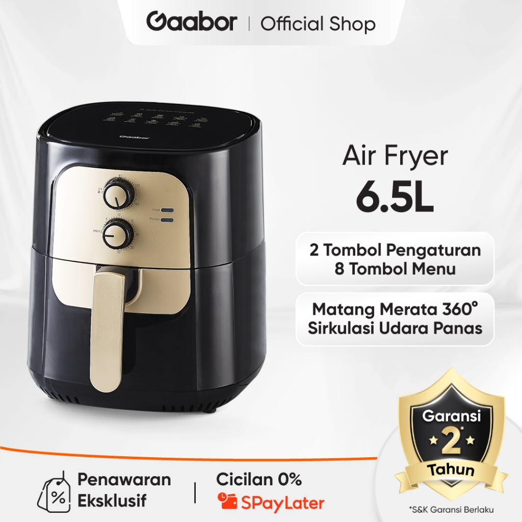 Gaabor Air Fryer 6.5L Pengaturan Suhu Penggorengan Tanpa Minyak Low Watt Serbaa / AF65M-BK01A