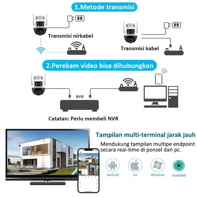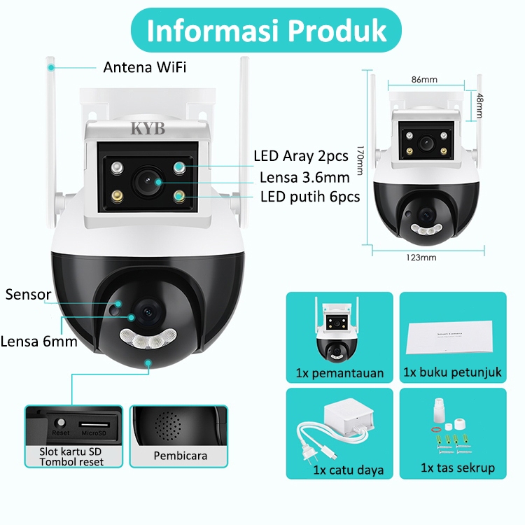 2025 KYB 8MP CCTV Wifi Jarak Jauh Lewat Hp Outdoor Dual Lens Waterproof IP67 Full HD IP Kamera 360°