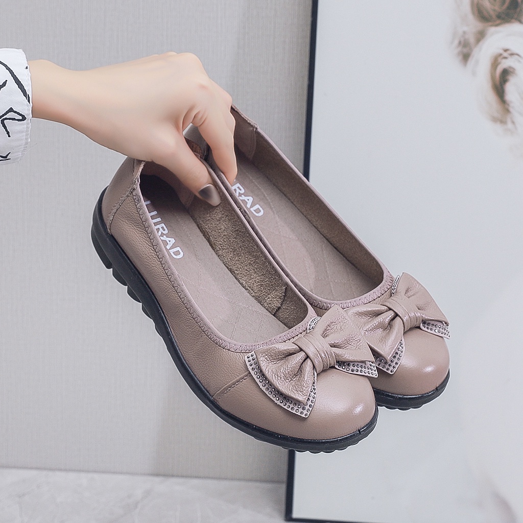 LURAD Sepatu Wanita Slip On 1887 Hitam Kulit Pelajar Sepatu Cewek Kerja Kuliah Kantor Modis Kualitas Bagus