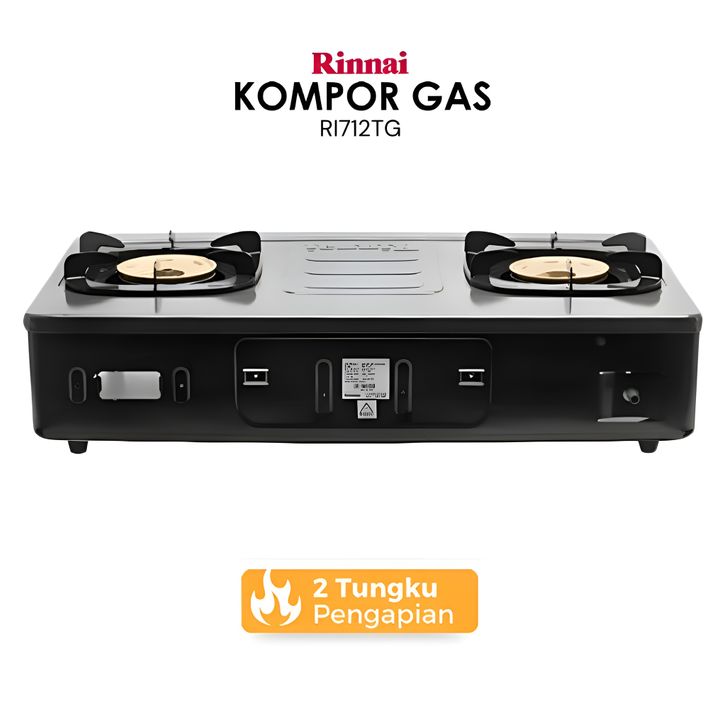 RINNAI KOMPOR GAS 2 TUNGKU STAINLESS API TURBO RI712TG ORIGINAL GARANSI RESMI