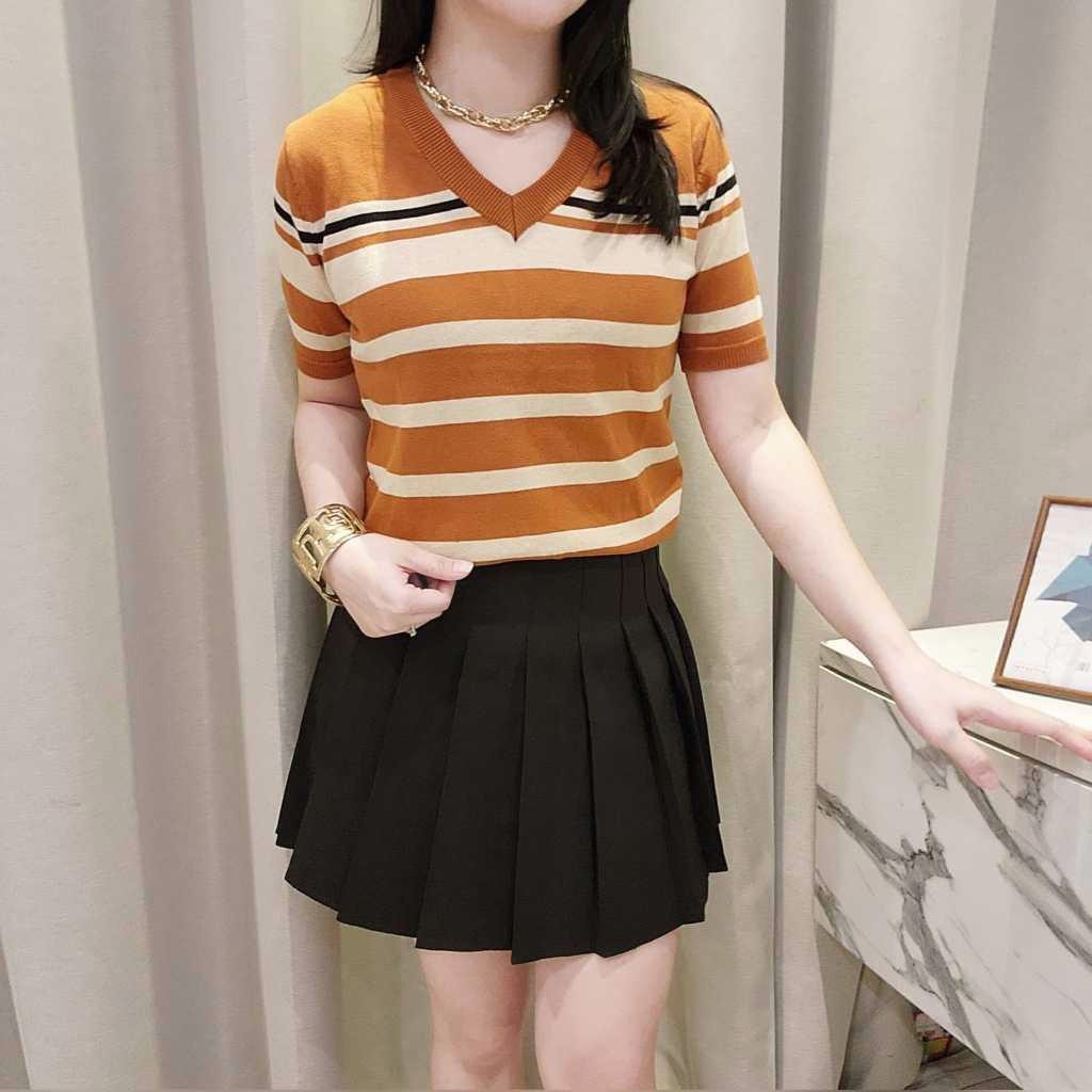 TokoMilkan Atasan Wanita Vente Top Strip Rajut Premium Korean Terbaru