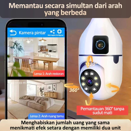 CCTV Pro Kamera HD CCTV Dual Lens Full HD Dual Lens Dual Screens Kamera CCTV WIFI Jarak Jauh Lewat HP Wireless IP