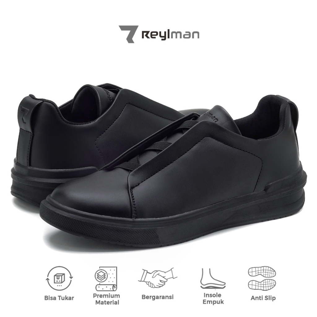 REYL MAN VENTURE Full Black - Sepatu Casual Pria Sneakers Hitam Sepatu Kerja Pria Slip On