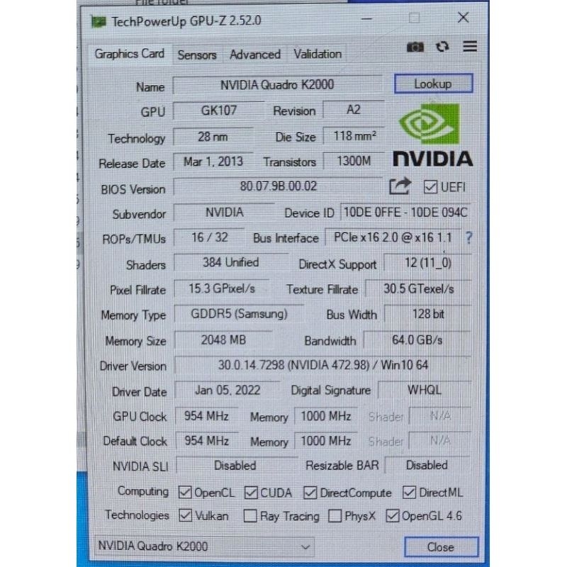 NVIDIA QUADRO K2000 VGA CARD 2GB 128BIT DDR5 COPOTAN ORI MURAH LEBAY