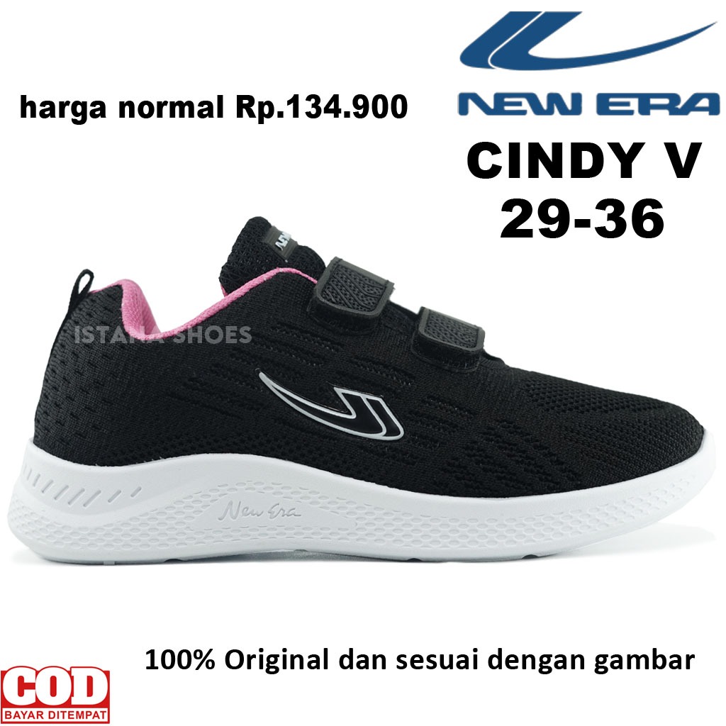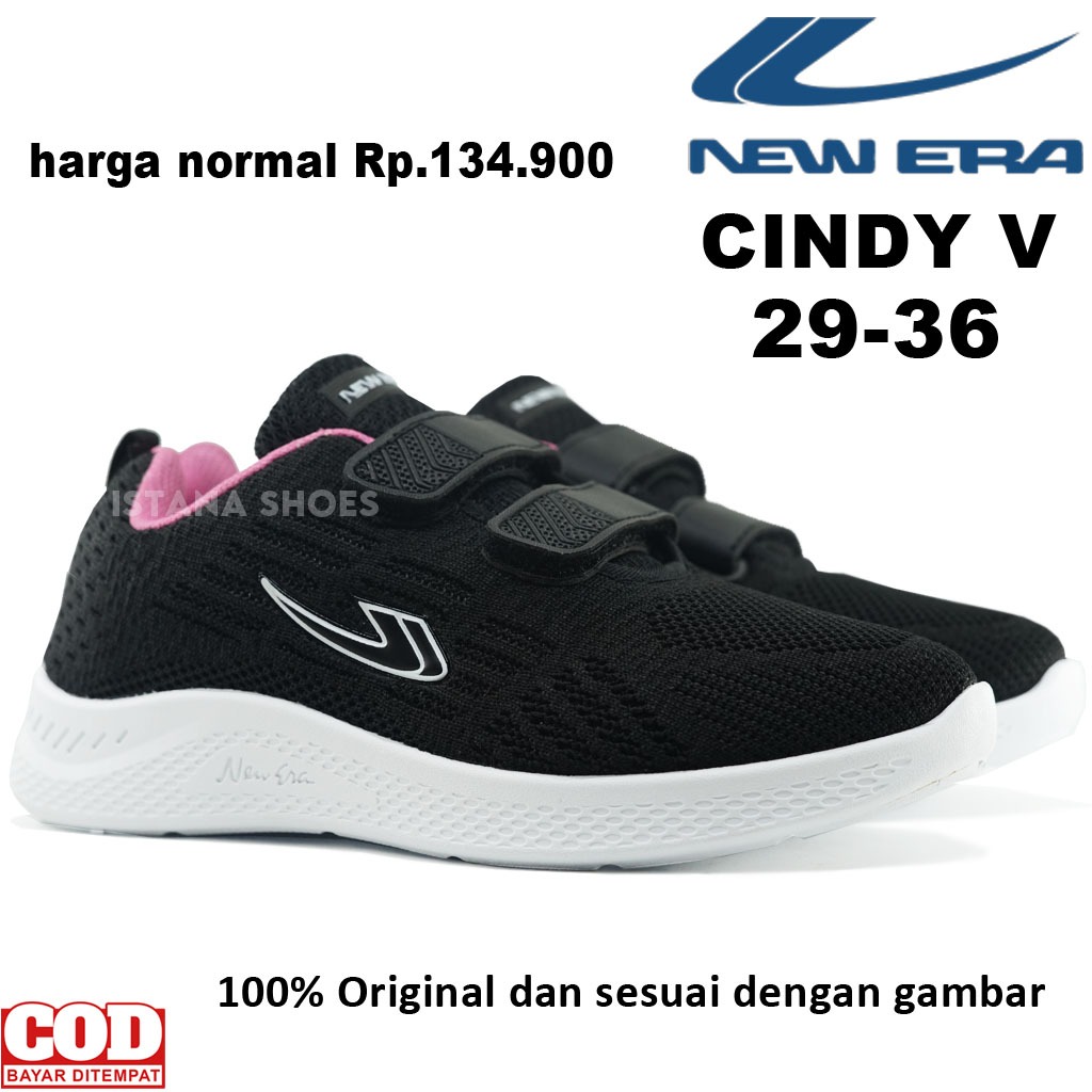 Sepatu Sekolah Anak Perempuan PAUD TK SD NEW ERA CINDY SEPATU ANAK KETS Hitam Pink PEREKAT