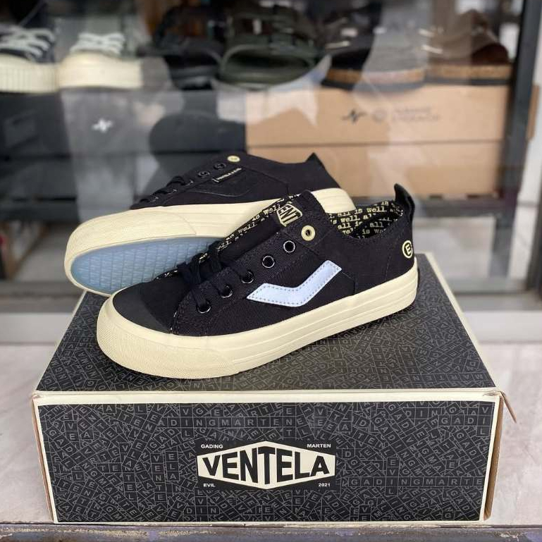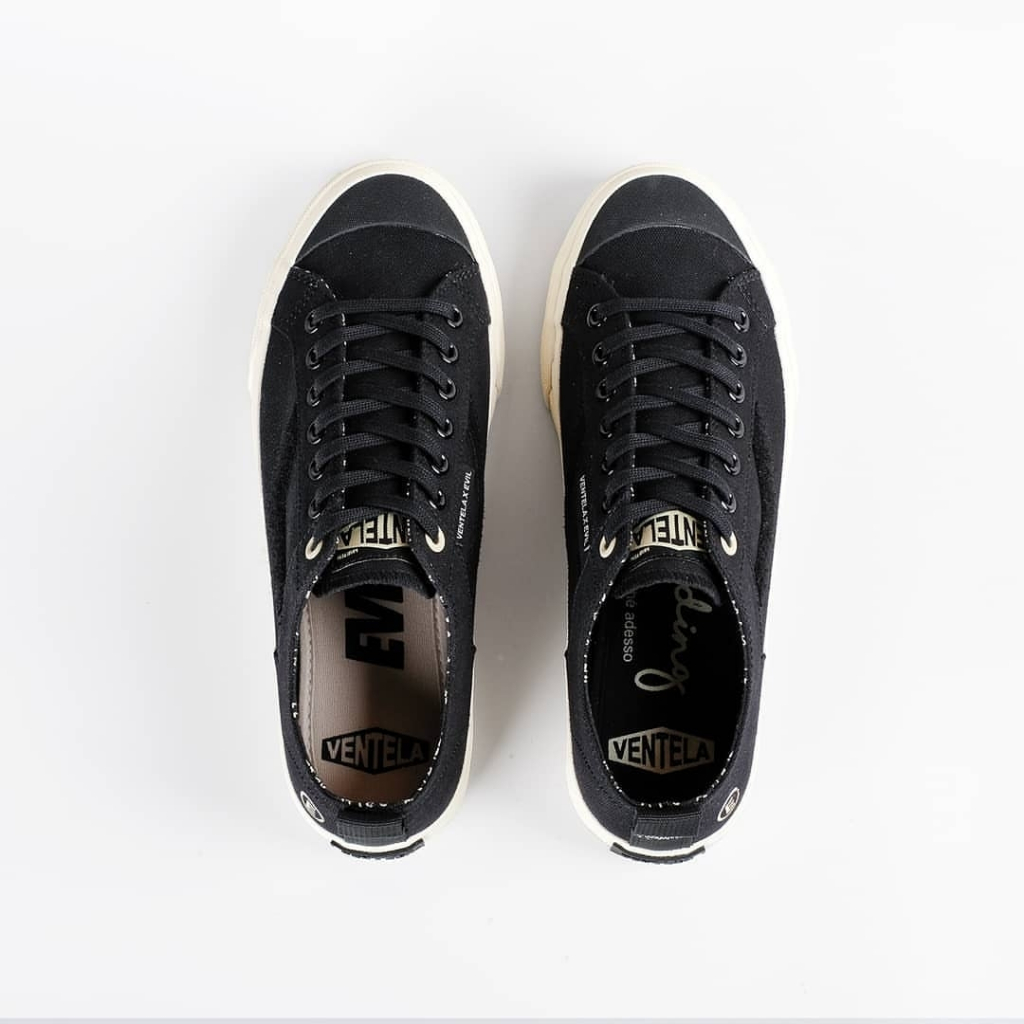 Sepatu Ventela x Evil x Papa Gading All Is Well Black Low Sepatu Pria Ventela Kasual Kanvas Pendek