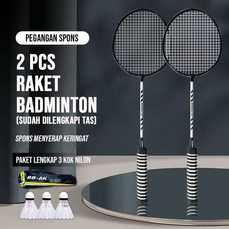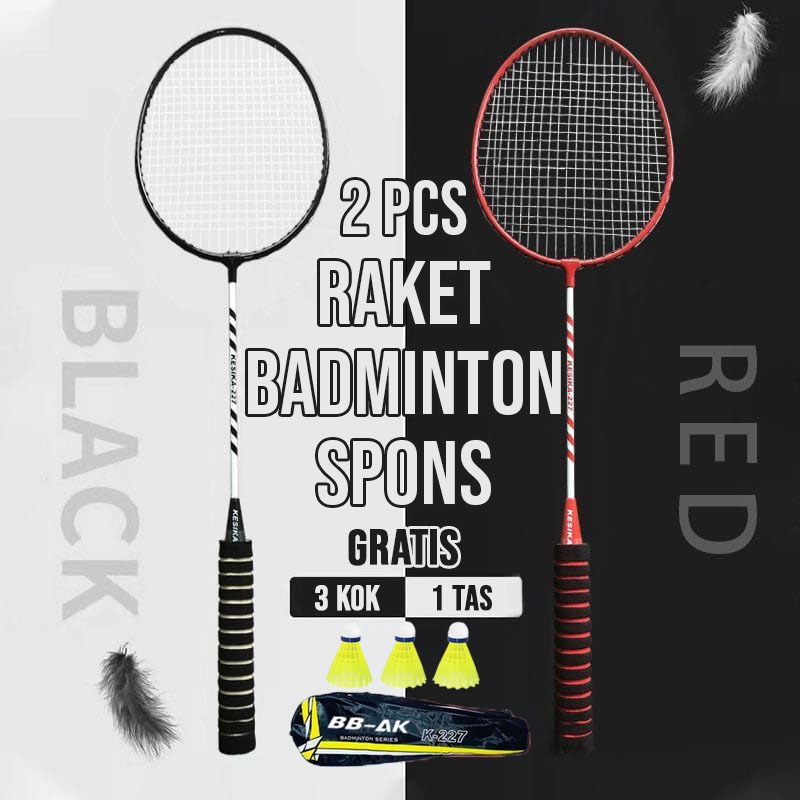 SET 2 PCS Raket Badminton Busa Raket Bulutangkis Pegangan Spons GRATIS TAS RAKET & 3 KOK