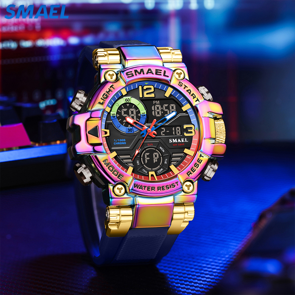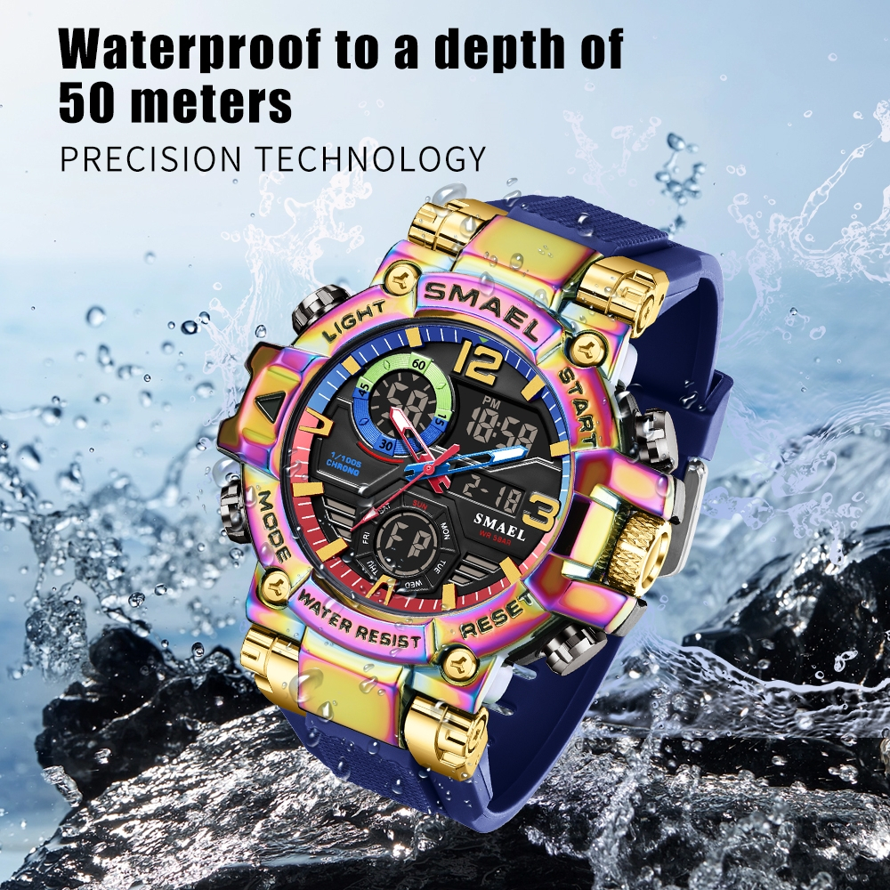 Jam Tangan Olahraga Pria Tahan Air Stainless Steel Alarm Multifungsi Pencahayaan Malam