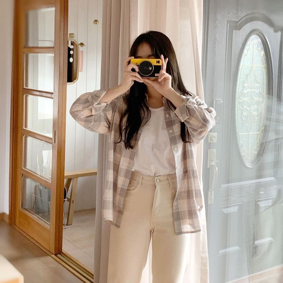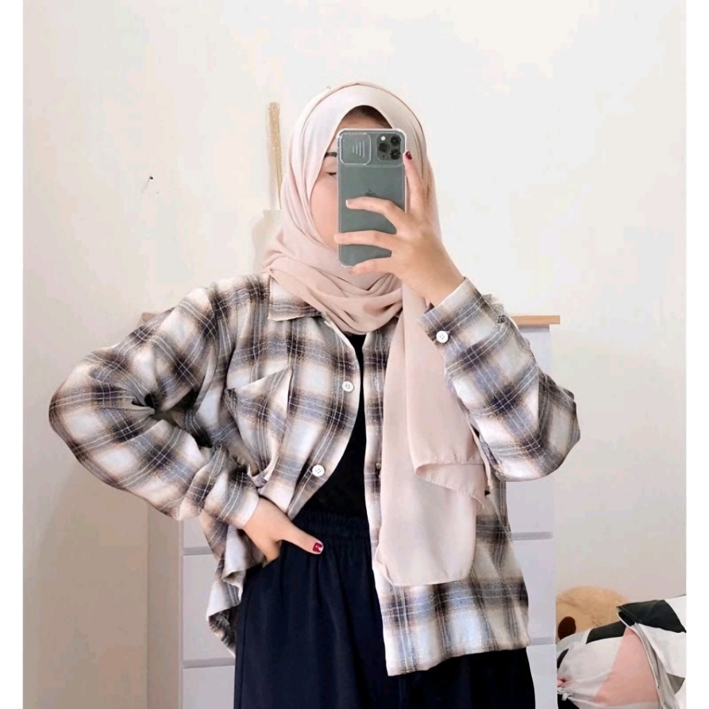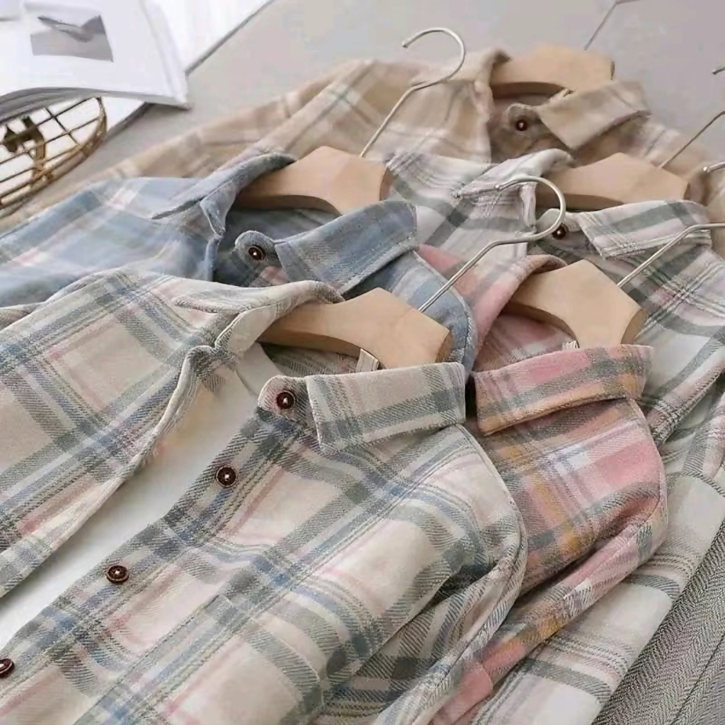 Atasan Wanita Kemeja Flanel Wanita Flannel Wanita Kemeja Kotak-kotak Lengan Panjang Korean Style