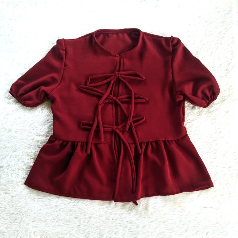 T0P | Blouse Korea | Atasan Perempuan | Ribbon Top | Coquette Top