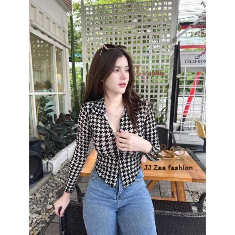 Longsleeve Zipper Houndstooth RIB KNIT PREMIUM