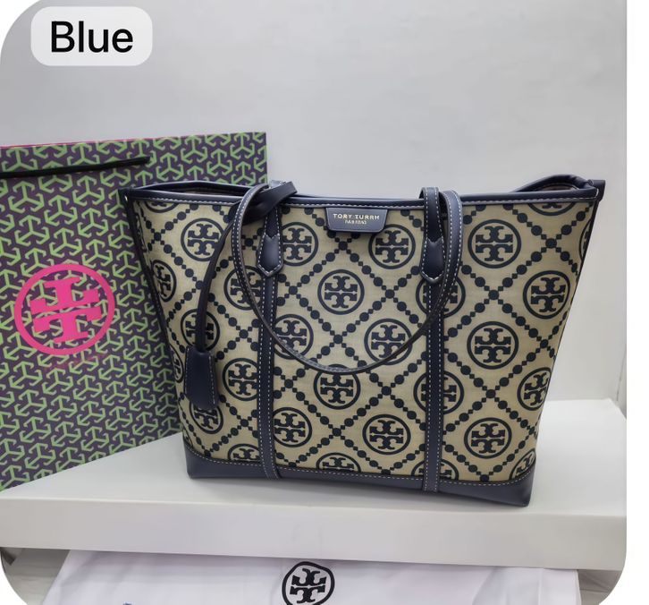TAS TORY BURCH PERRY CANVAS COMBI KULIT PREMIUM/TAS WANITA TORI 32CM/TOTEBAG TAS BRANDED TERBARU